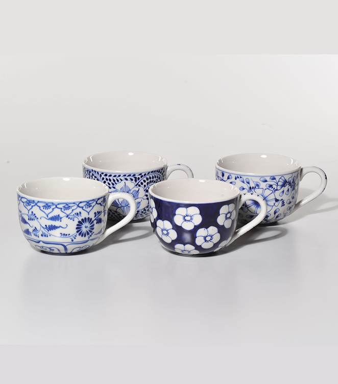 4 BÜROTASSEN blau bemalt dm10,5xH8,5cm