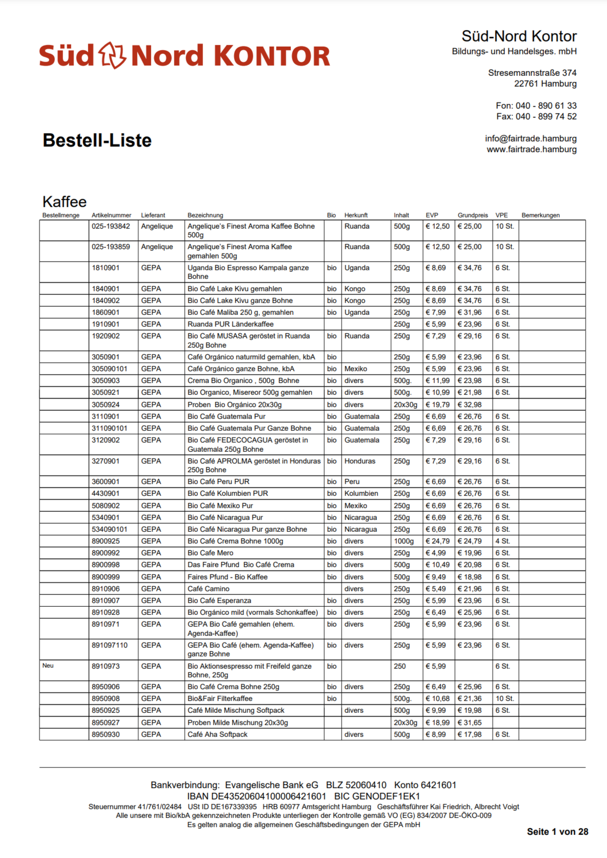 Süd Nord Kontor Sued Fair Trade Fairtrade Fairer Handel Hamburg Kaffee Tee Schokolade Geschenkartikel Geschenke Kaufen Lebensmittel Handwerk
