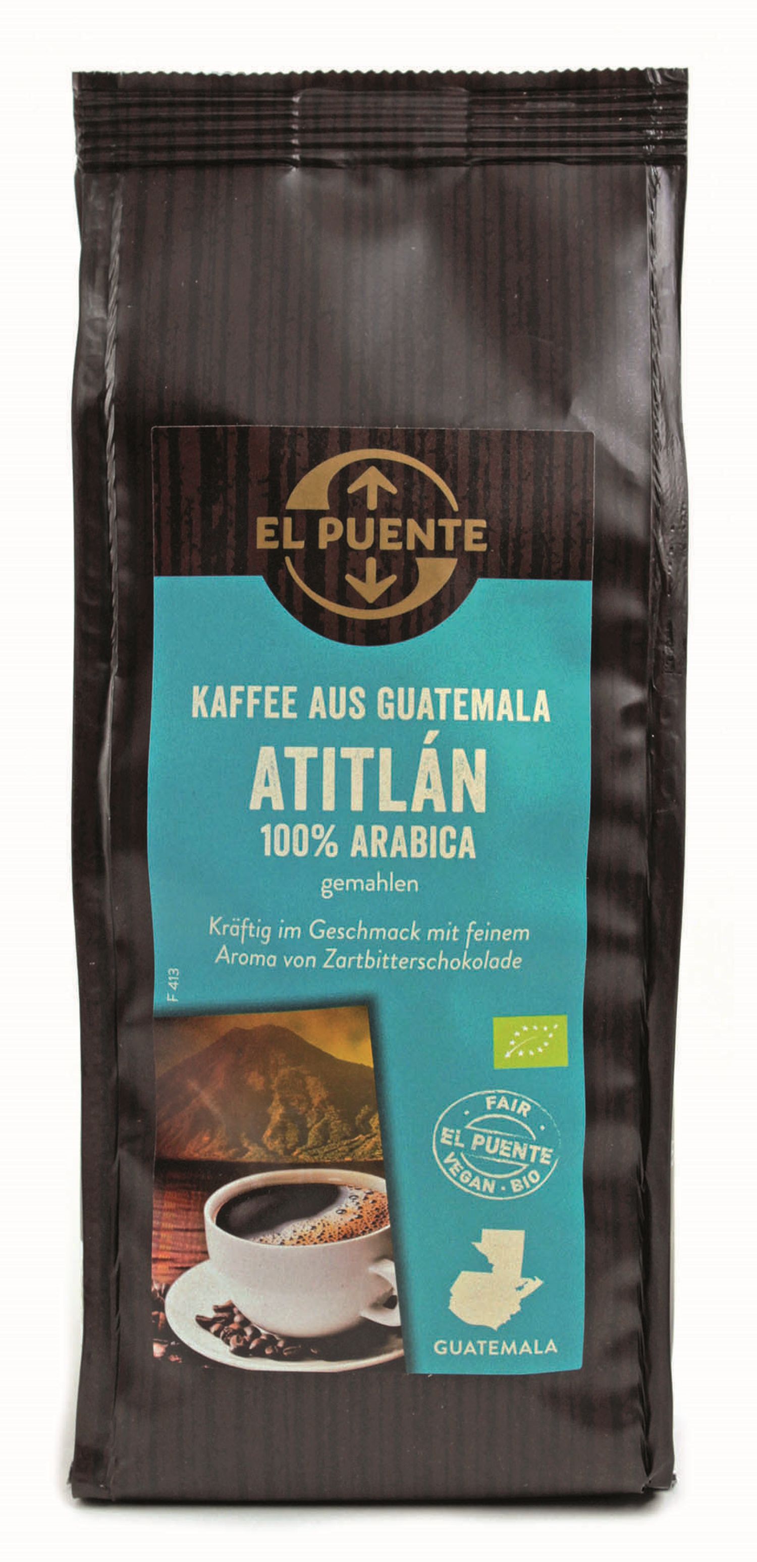 Der Name Atitlán steht für die Anbauregion im Südwesten Guatemalas. Der klare Atitlán-See in tiefem Blau ist umgeben von beeindruckenden Vulkanen und zählt zu den schönsten Seen der Welt. Hier befindet sich auch eine der besten Kaffeeanbauregionen Zentralamerikas. Auf 1.200 Metern Höhe wachsen die Kaffeepflanzen im Halbschatten von Avocadobäumen. Die hervorragenden klimatischen Bedingungen machen den sortenreinen Hochland-Arábica aus biologischem Anbau zu einem Hochgenuss für Kaffeeliebhaber.