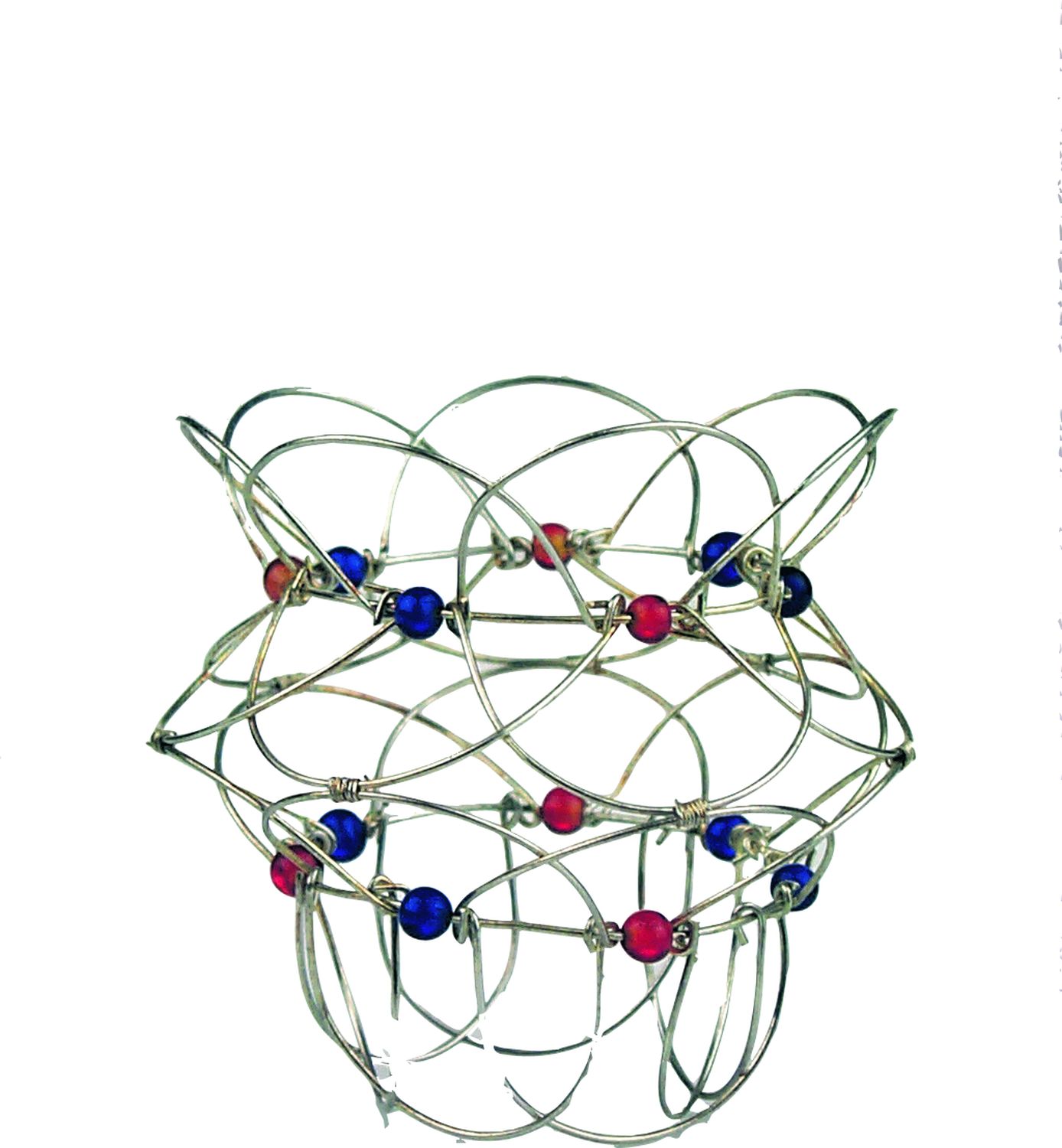 Drahtspiel/Mandala, versilbert, mit bunten Glasperlen