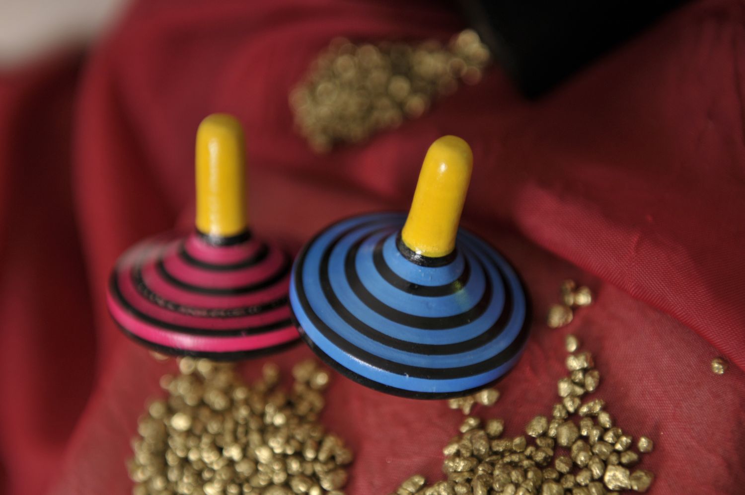 Pala-Indigo-Holz, H 4,5cm, Ø 4 cm, farbig bemalt