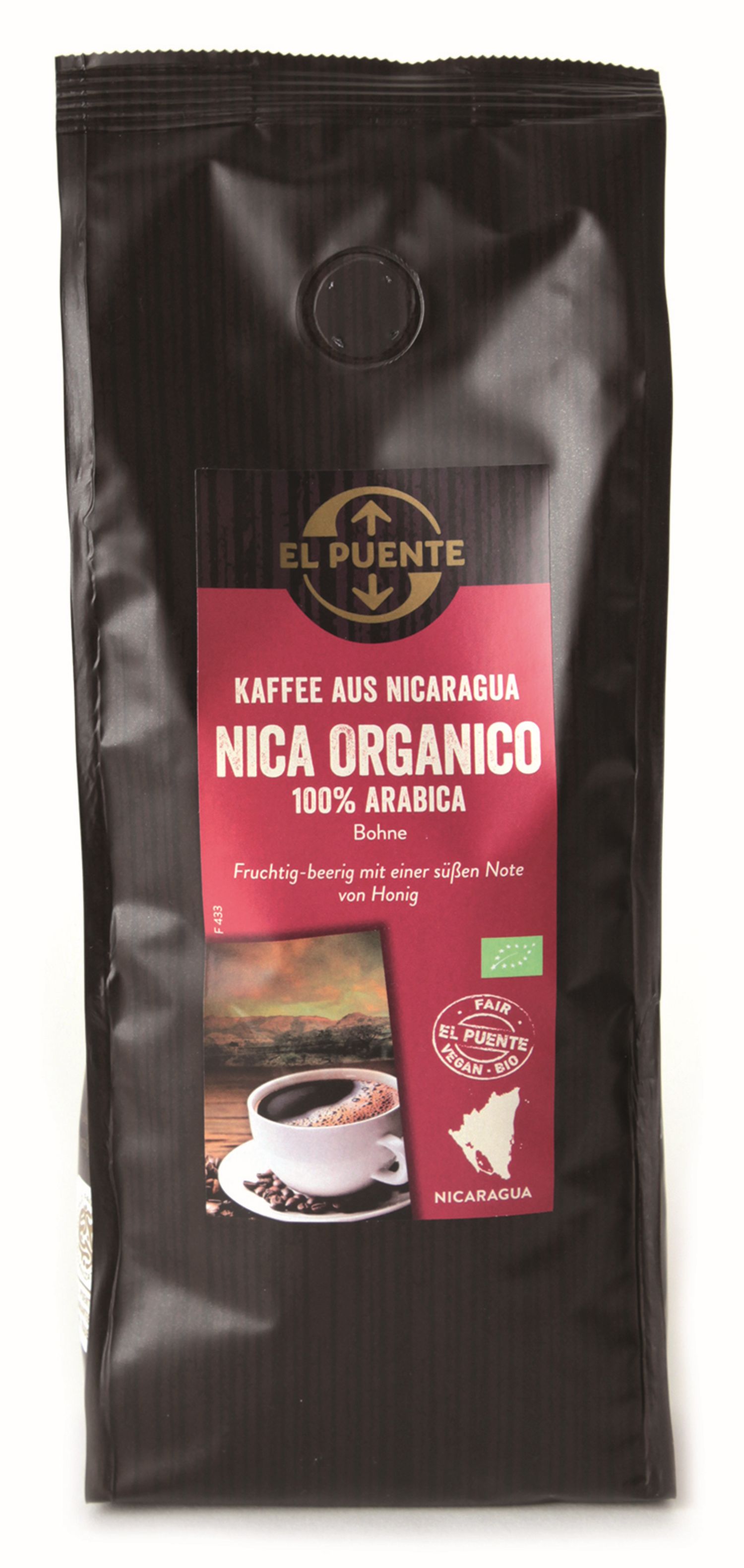 Der Nica Organico schmeckt angenehm süß. Er hat einen vollen Körper und Noten von Beeren und Honig, die durch die mittlere Röstung verstärkt werden.