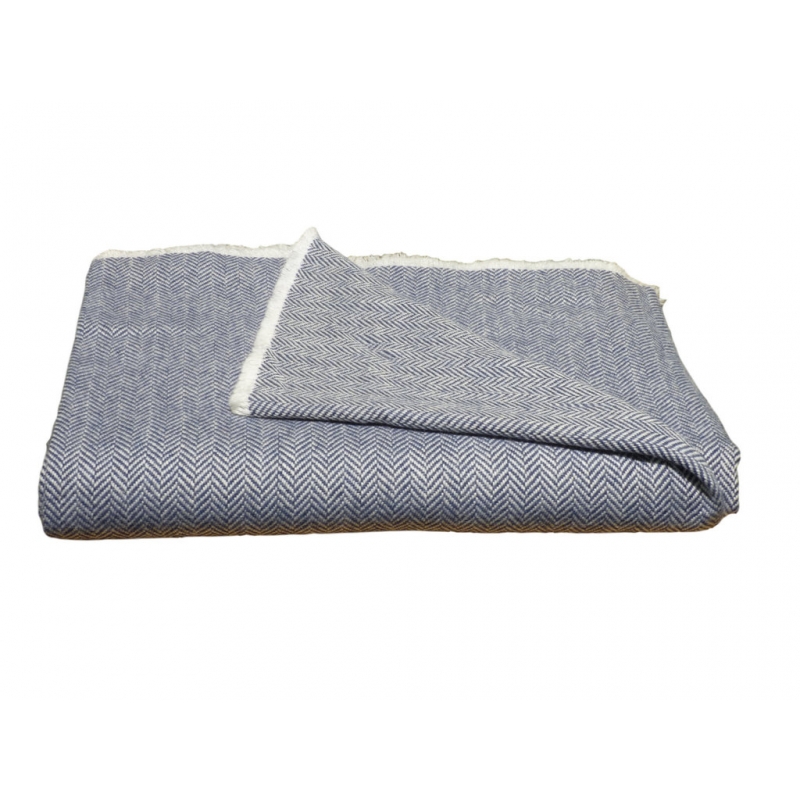 Wolldecke mit Fischgrätenmuster - blau