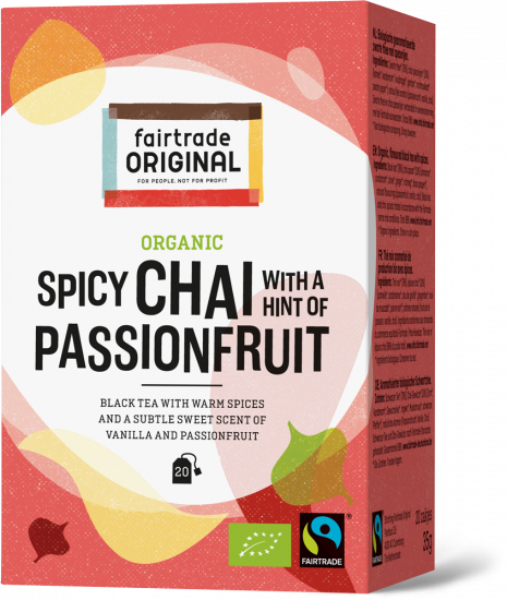 Chai ist ein wärmender Tee mit einer abenteuerlichen Fülle an Aromen. Durch einen Hauch von Passionsfrucht erhält er einen verführerischen, frischen fruchtigen Akzent.