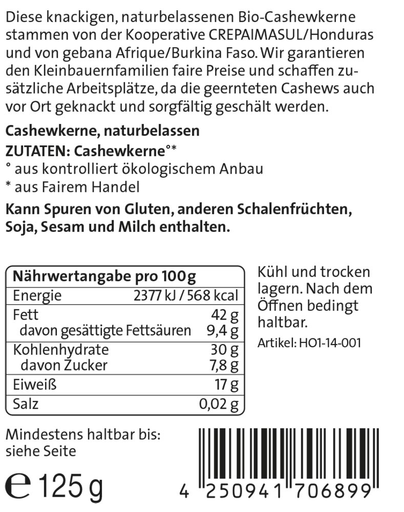 Knackige Bio-Cashewnüsse von Kleinbauern in Honduras (CREPAIMASUL) sind schmackhafte Begleiter zu einem guten Glas Wein und lassen sich vielfach einsetzen, vor allem in der indisch-asiatischen Küche.