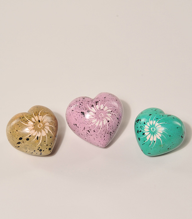 3 HERZEN khaki, türkis,flieder