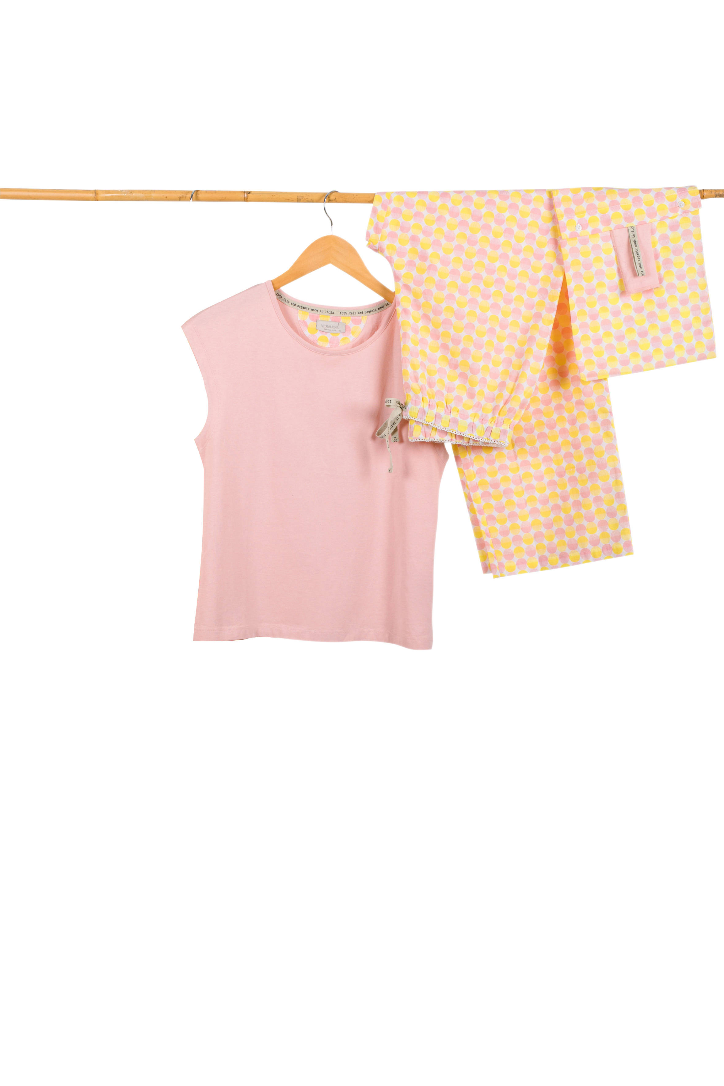 Oberteil in Single-Jersey Qualität, Hose aus fein gewebtem Stoff