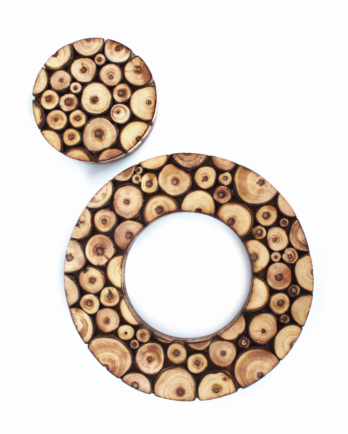 Mango- und Pappelholz, mit aufwändiger Holzscheibenapplikation, Ø 20,5 cm, Ø 10 cm