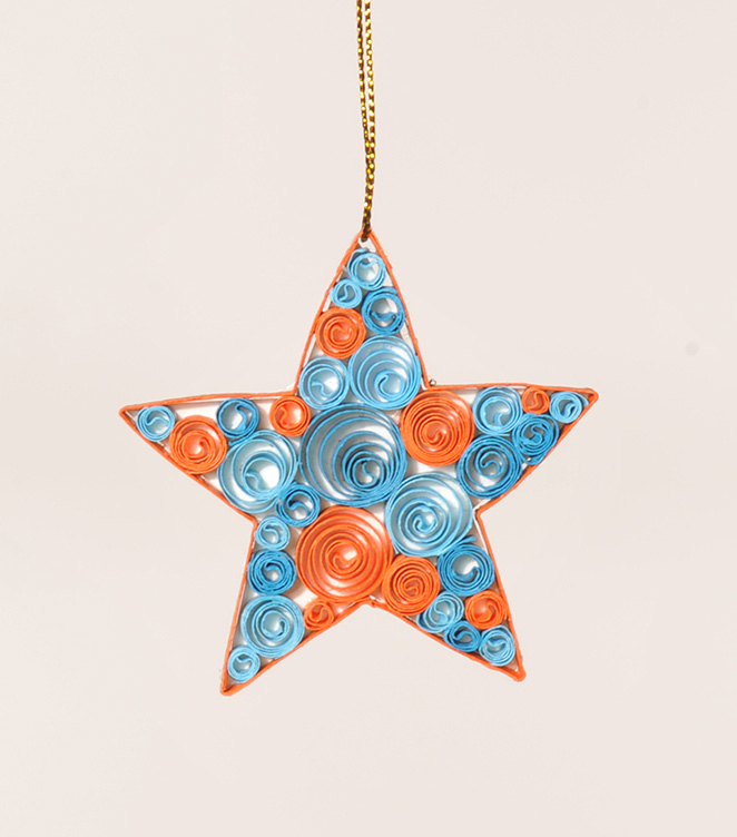 WEIHNACHTSANHÄNGER Stern orange-blau