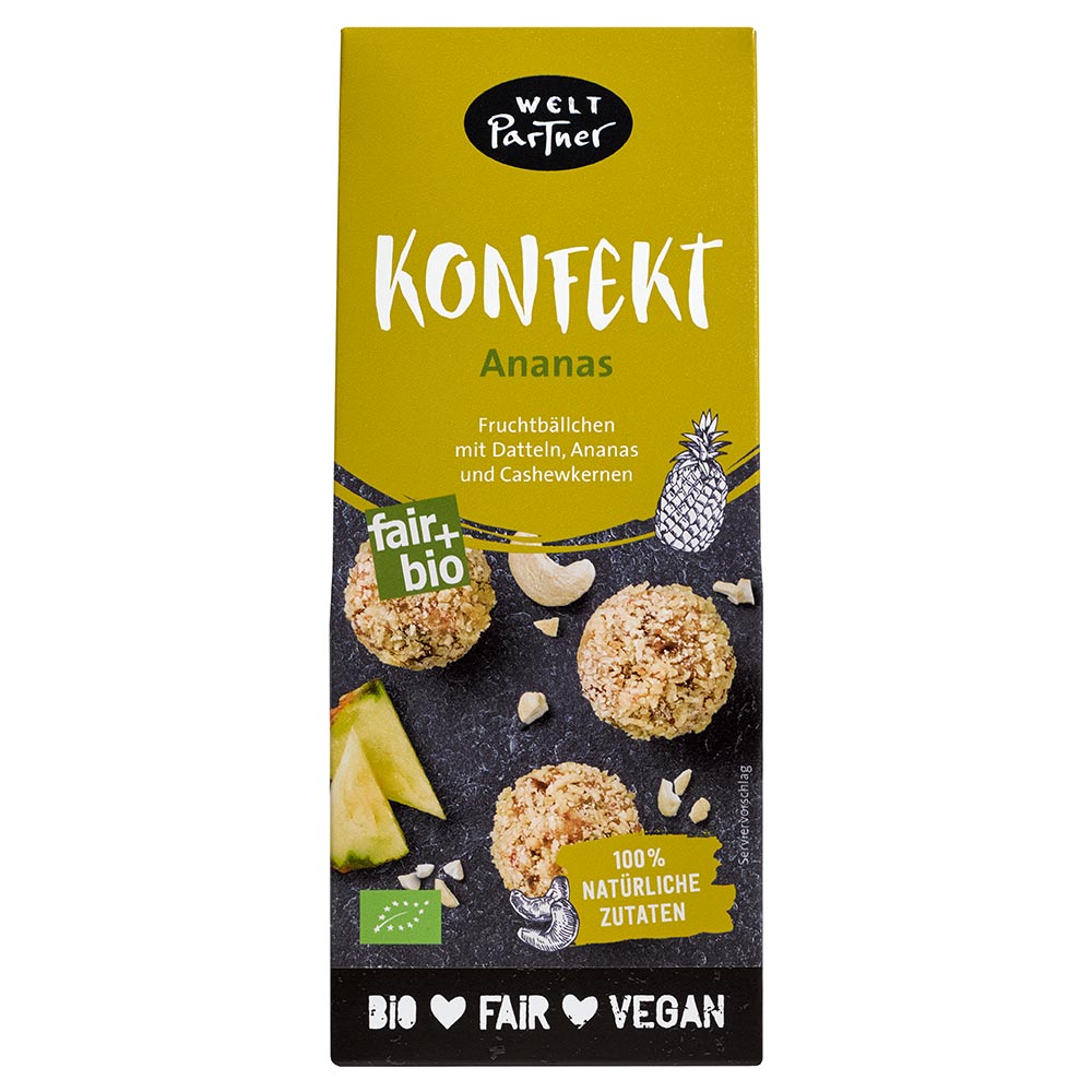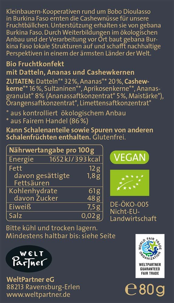 Fruchtbällchen mit Datteln, Ananas und Cashewkernen, 80g, vegan