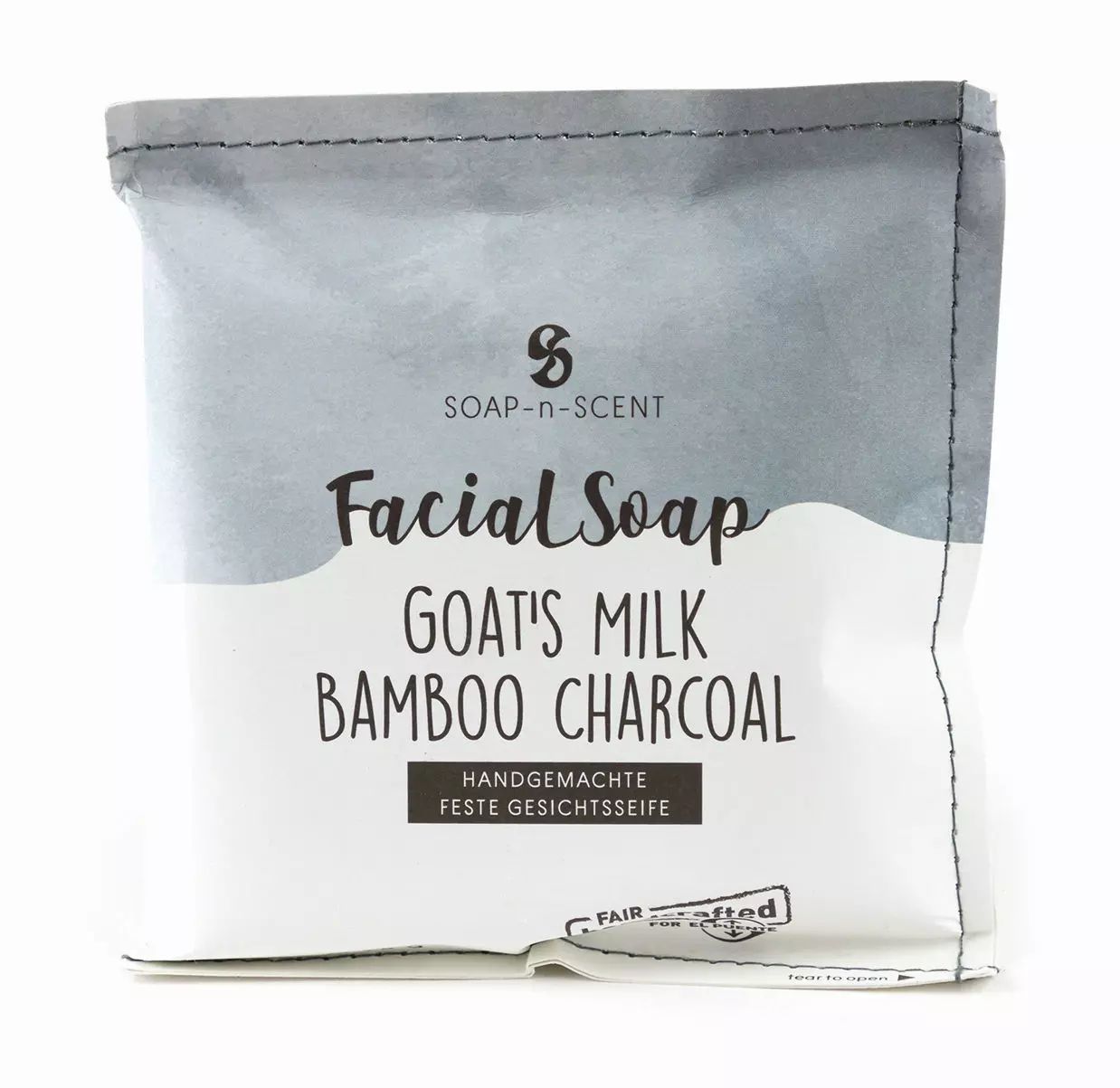 handgemachte feste Gesichtsseife aus pflanzlichen, Ölen, mit Ziegenmilch, Sorte: Bambuskohle, 75 g