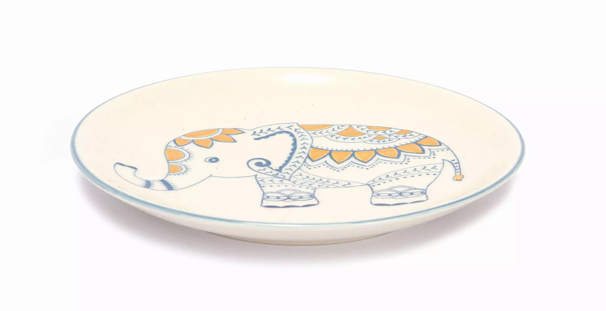 Keramik, beige/blau/gelb, Ø 18 cm, geeignet für Mikrowelle und Spülmaschine