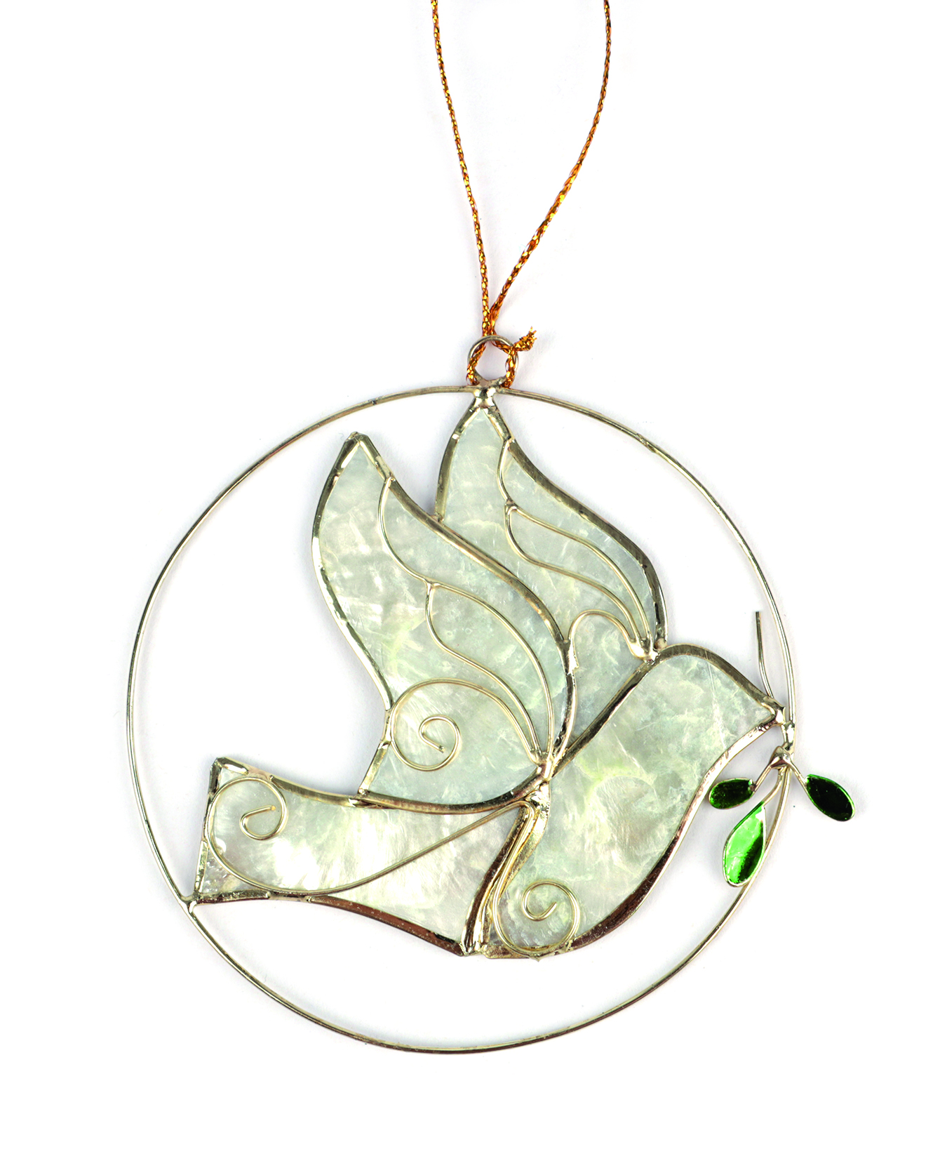 Hängedeko "Friedenstaube"Capiz und Metall, natur/grün/gold,Ø 9 cm
