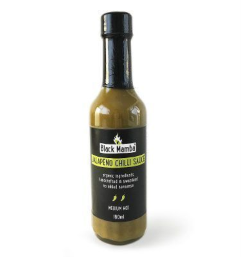 Chili Sauce, leichte Schärfe. Obwohl sie zuerst harmlos erscheint, trifft sie deine Geschmacksknospen dann mit einer raffinierten Fusion aus Schärfe und Würze. Black Mamba wurde 2010 als sozial engagiertes Privatunternehmen gegründet und produziert biologisch hergestellte Chili-Saucen, Pestos und Chutneys. Sämtliche Mitarbeiter in der Produktion haben feste Arbeitsverträge und eine Rentenversicherung. Die Chilies, Früchte und Kräuter werden von ca. 50 Frauen in ihren eigenen Gärten angebaut, die sie nach biologischen Standards bewirtschaften