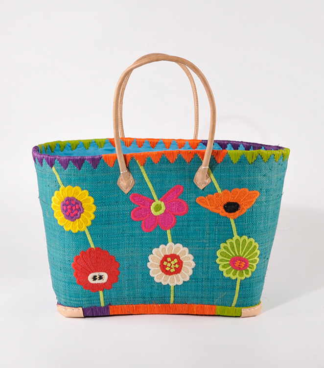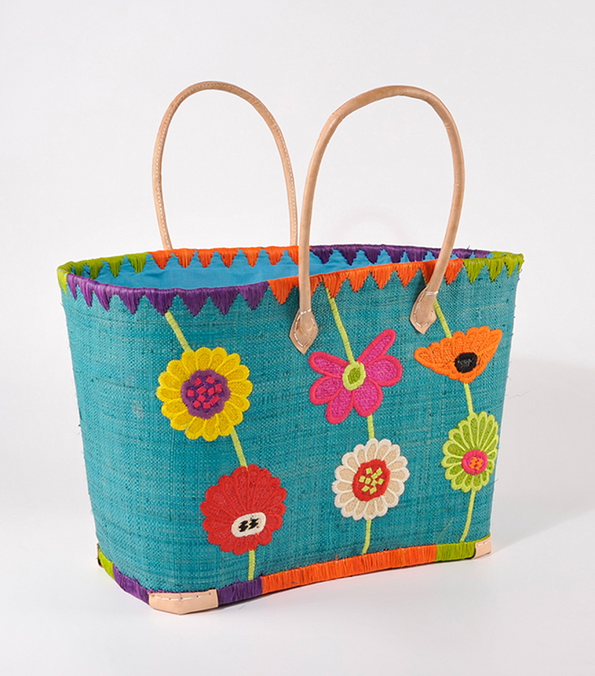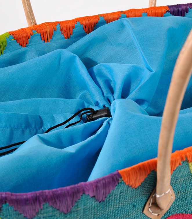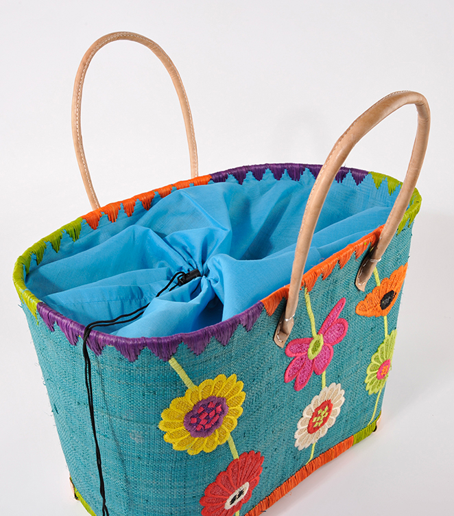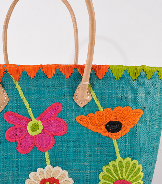 RAFFIATASCHE Blumen petrol