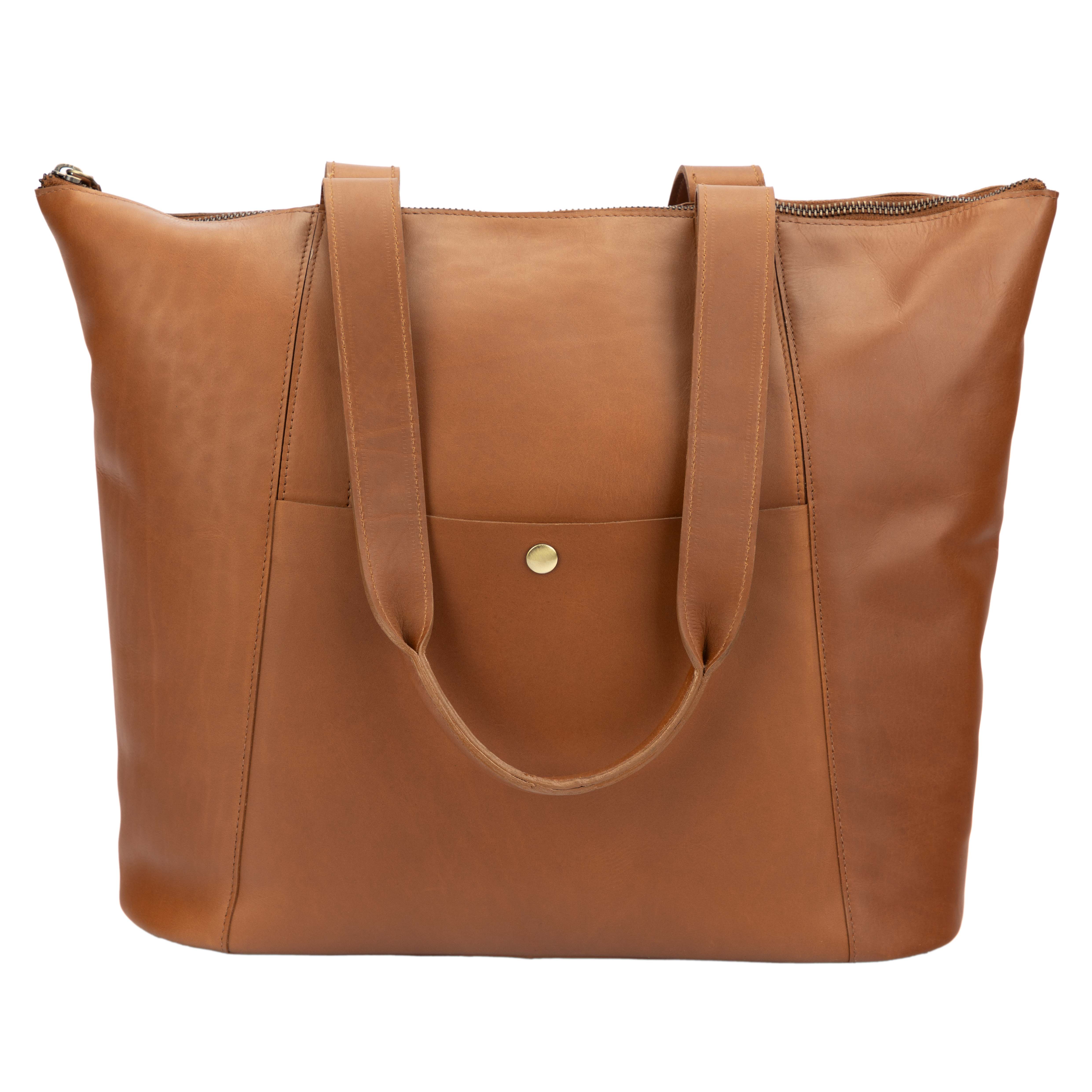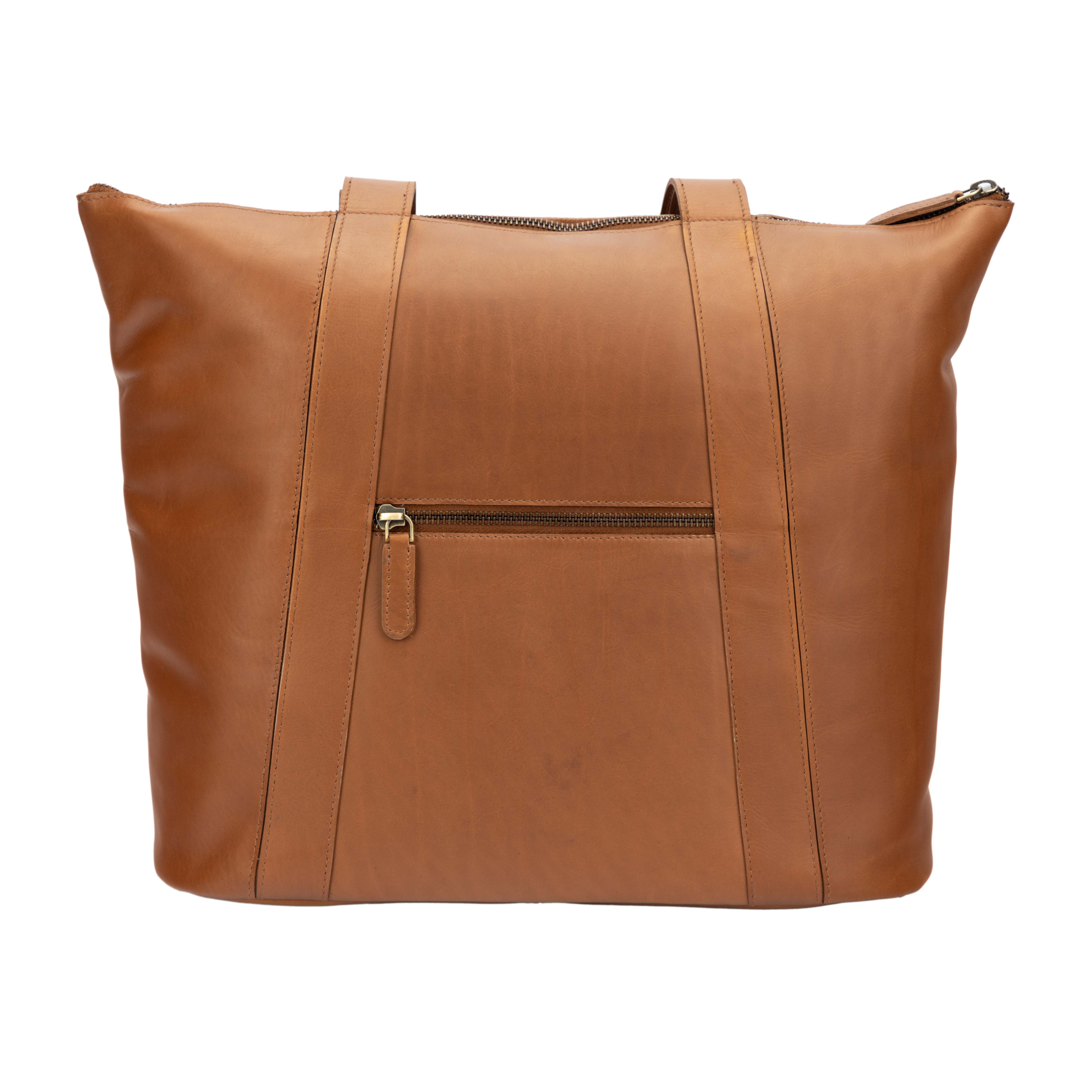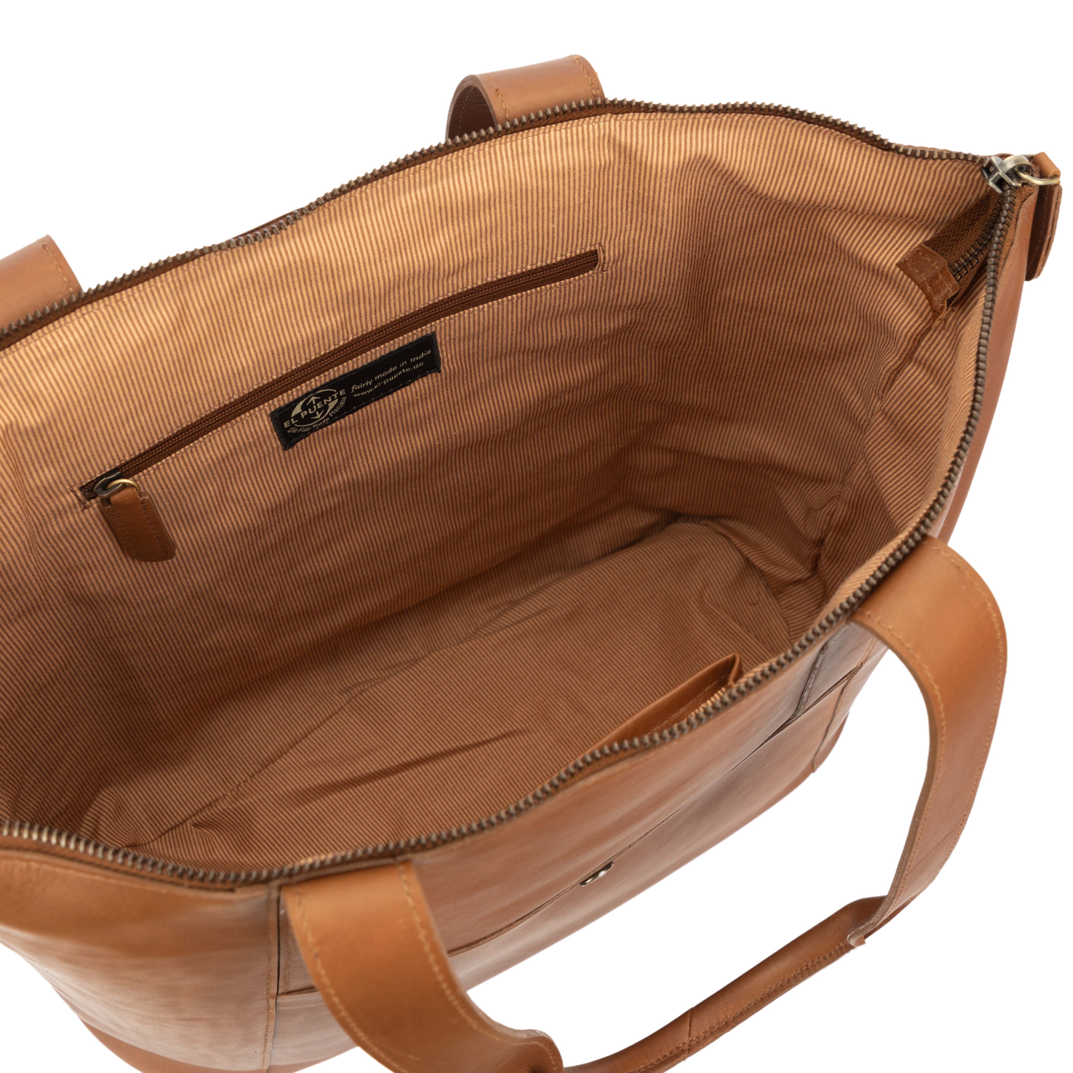 Rindsleder, Metall, Reißverschlussfach hinten, Handyfach, Reißverschlussfach innen, braun, 40 x 30 x 10 cm