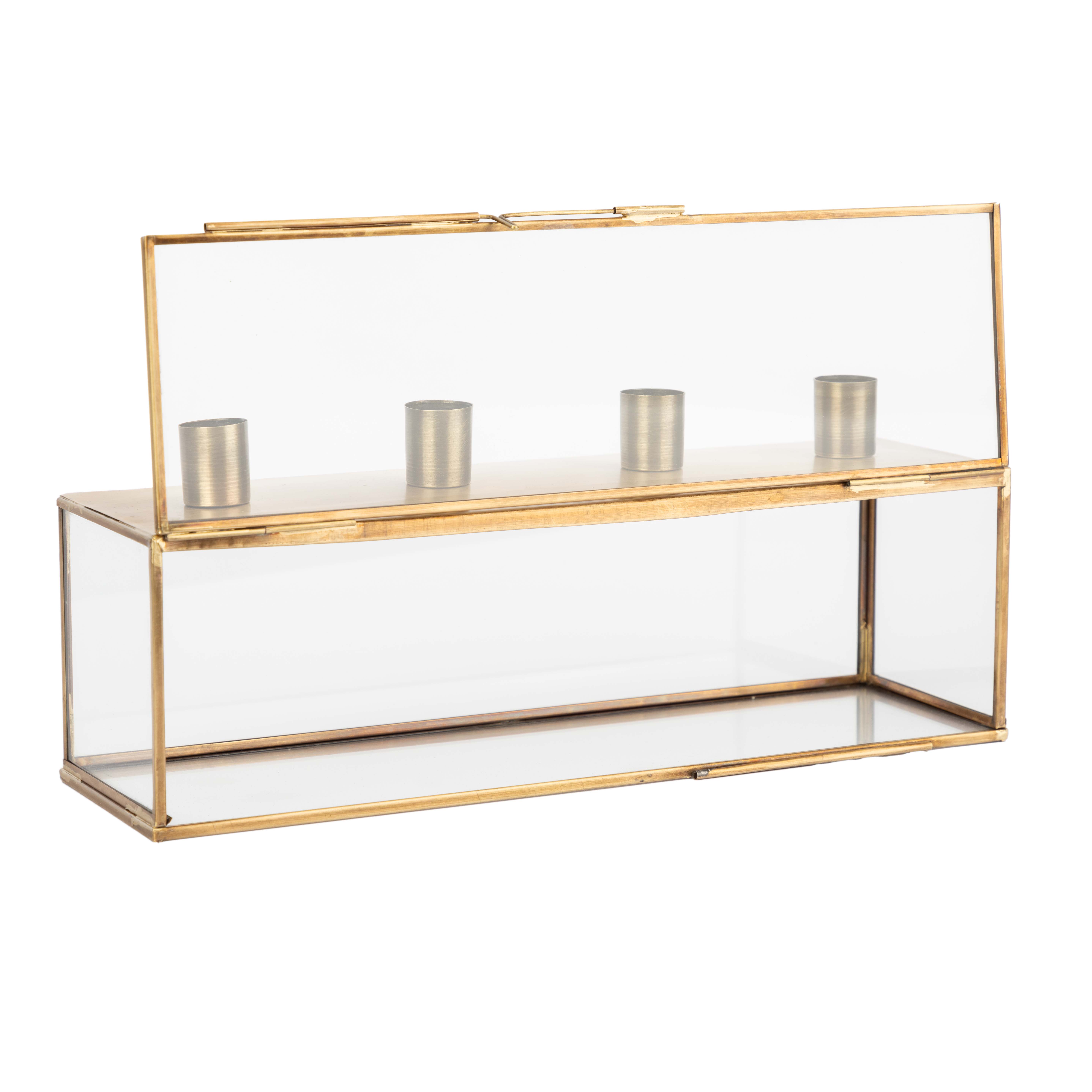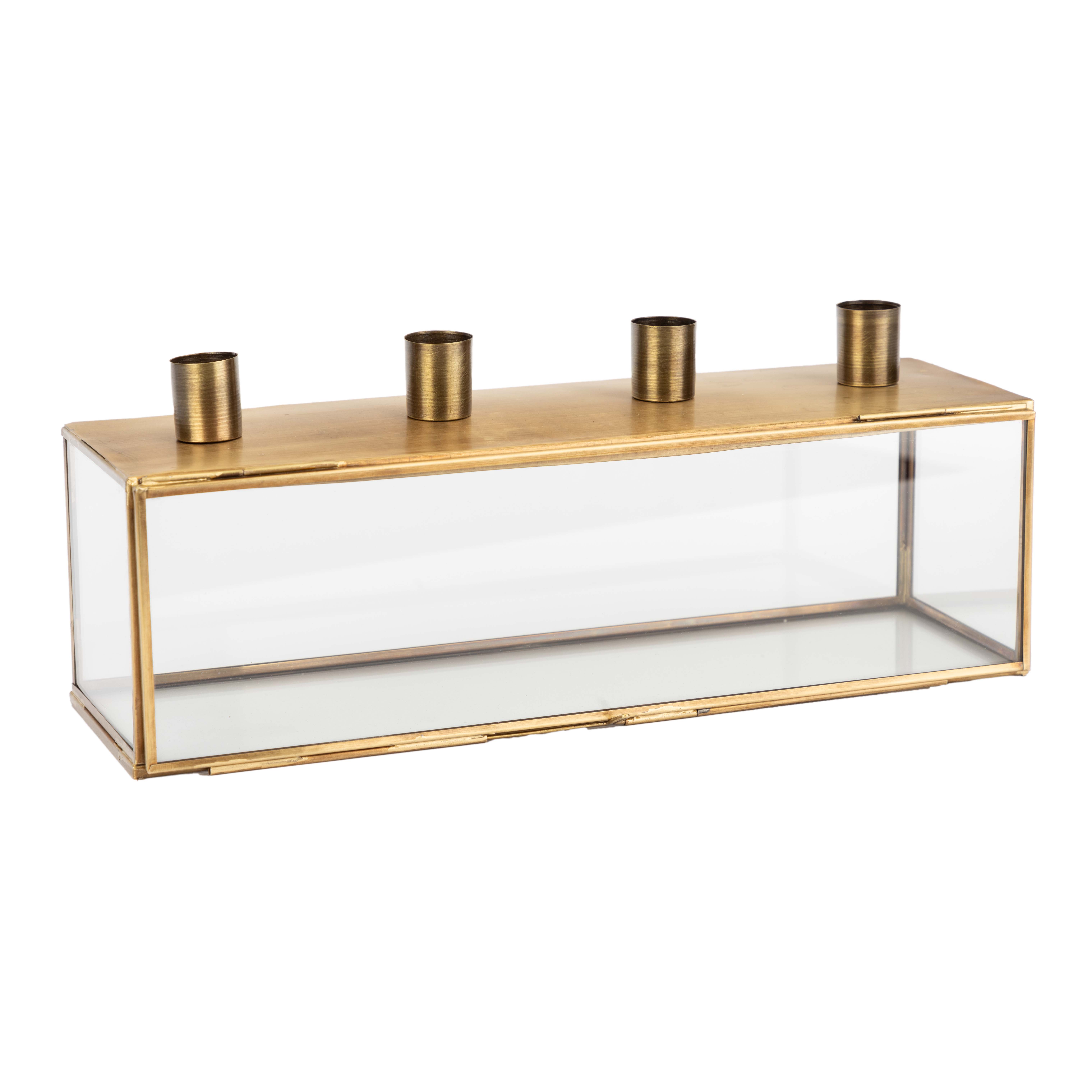 Eisen, Glas, gold, für 4 Stabkerzen, , individuell befüllbar, 31 x 10 x 9 cm
