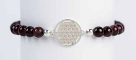 Armband auf Gummi, Blume des Lebens, Granat