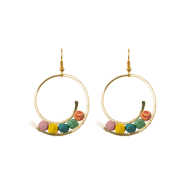 Ohrringe Kantha SNAIL bunt, Textil mit Messing