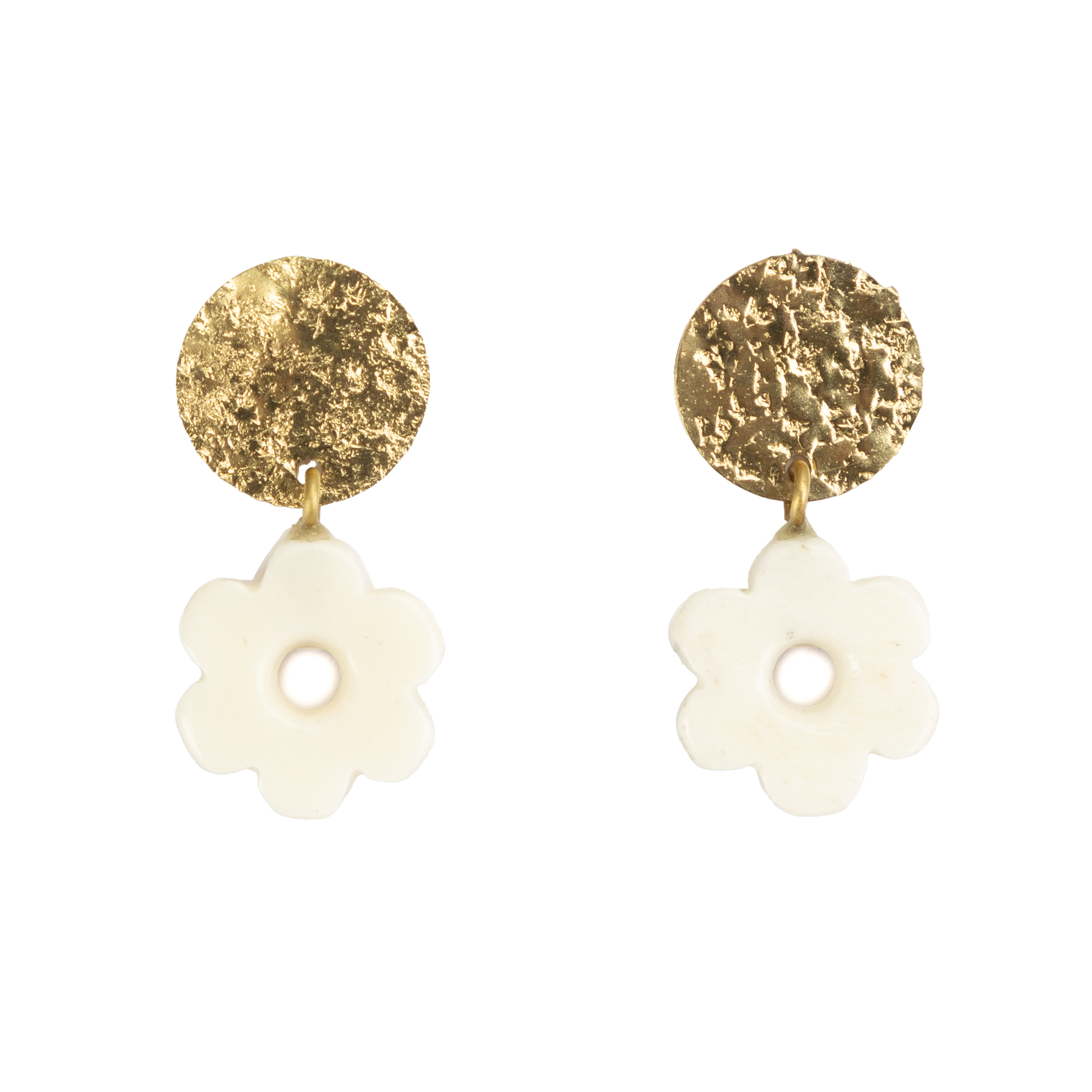 Ohrringe "Classic Flower", Messing, gold/creme,