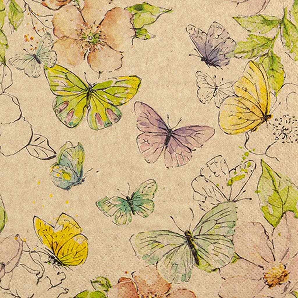 Hochwertige Motivservietten Bunte Schmetterlinge 33x33 cm, 2-lagig mit besonders gutem Druck und aus Recycling-Tissue. Hergestellt in Deutschland.