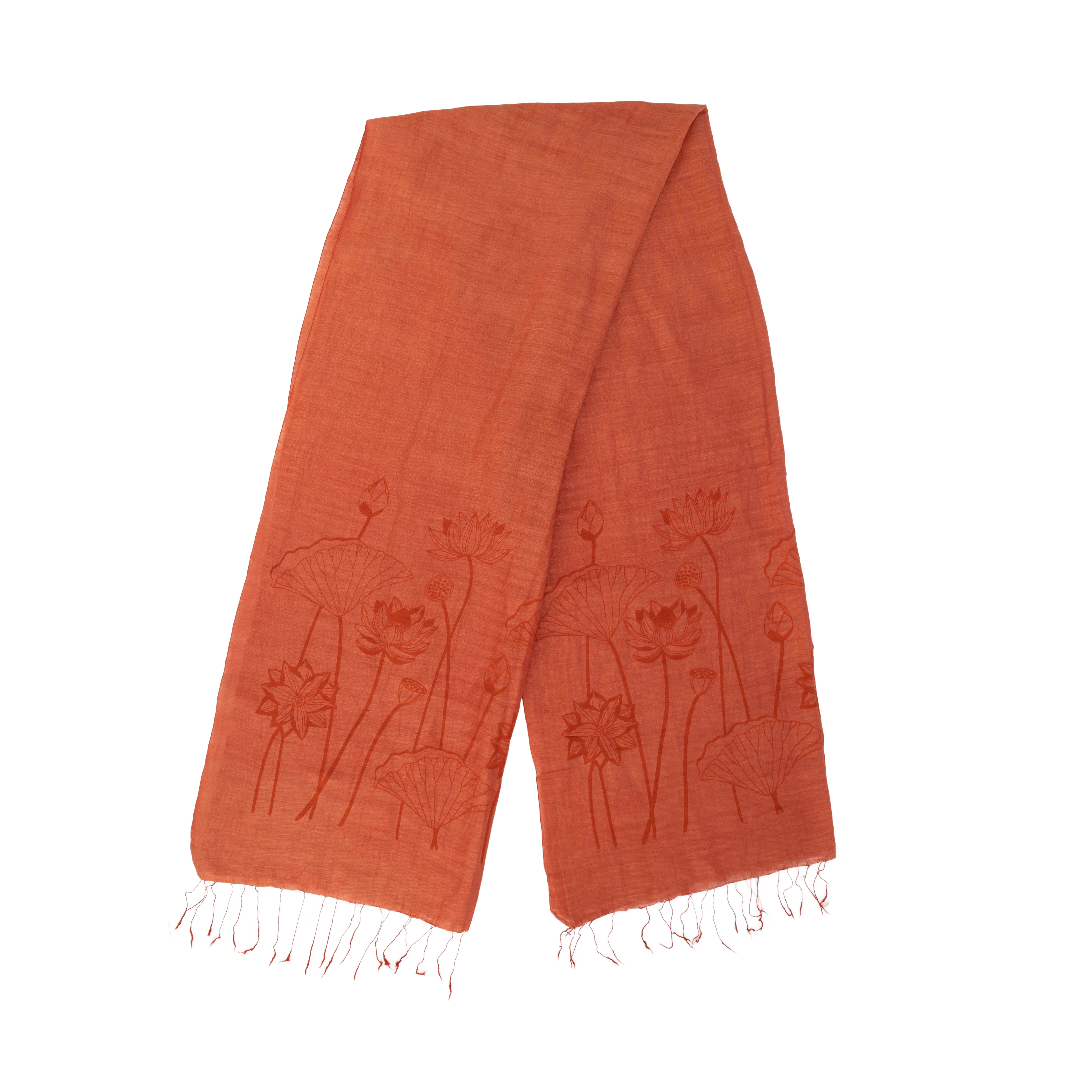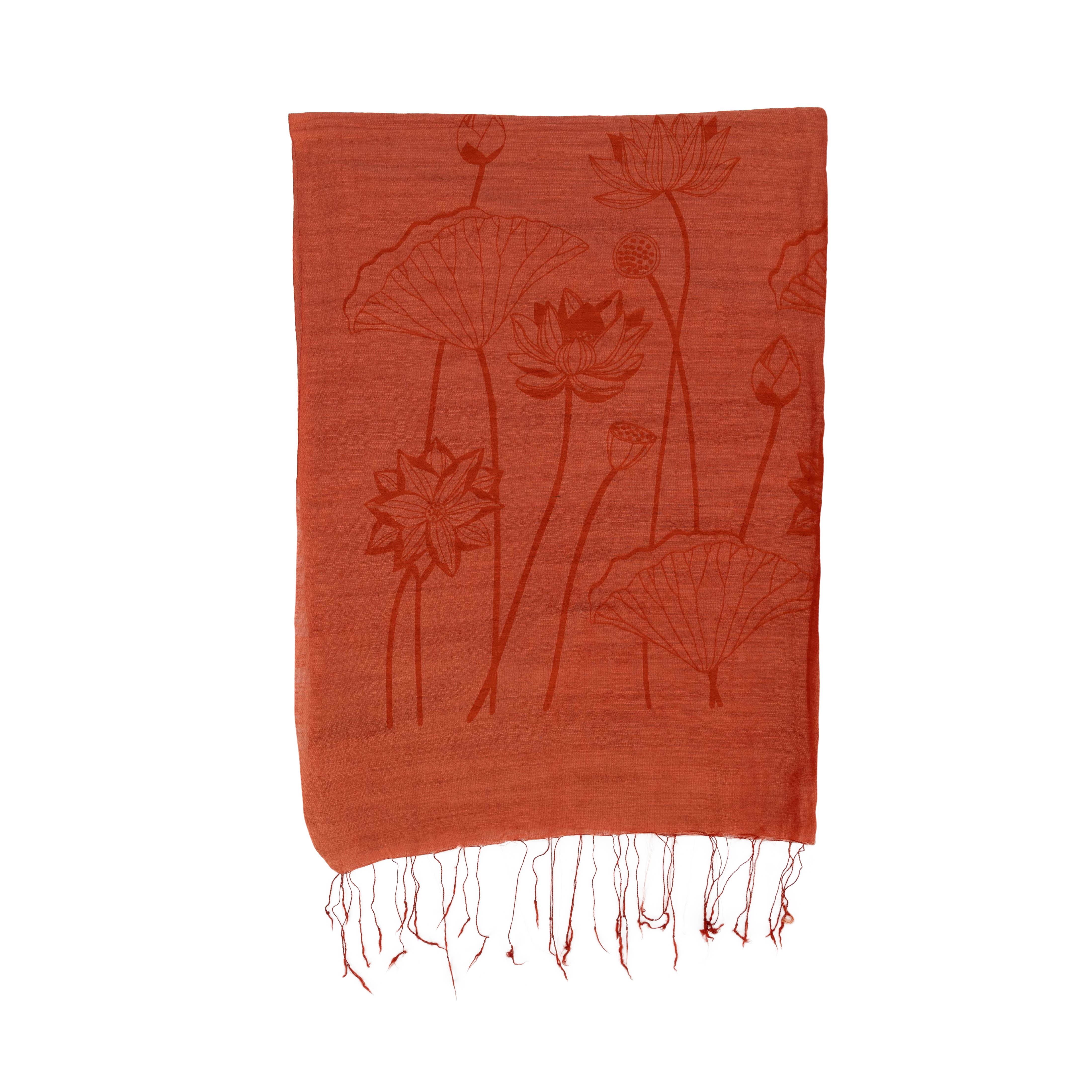 92% Baumwolle, 8% Seide, handgewebt und -bedruckt, koralle, 60 x 180 cm