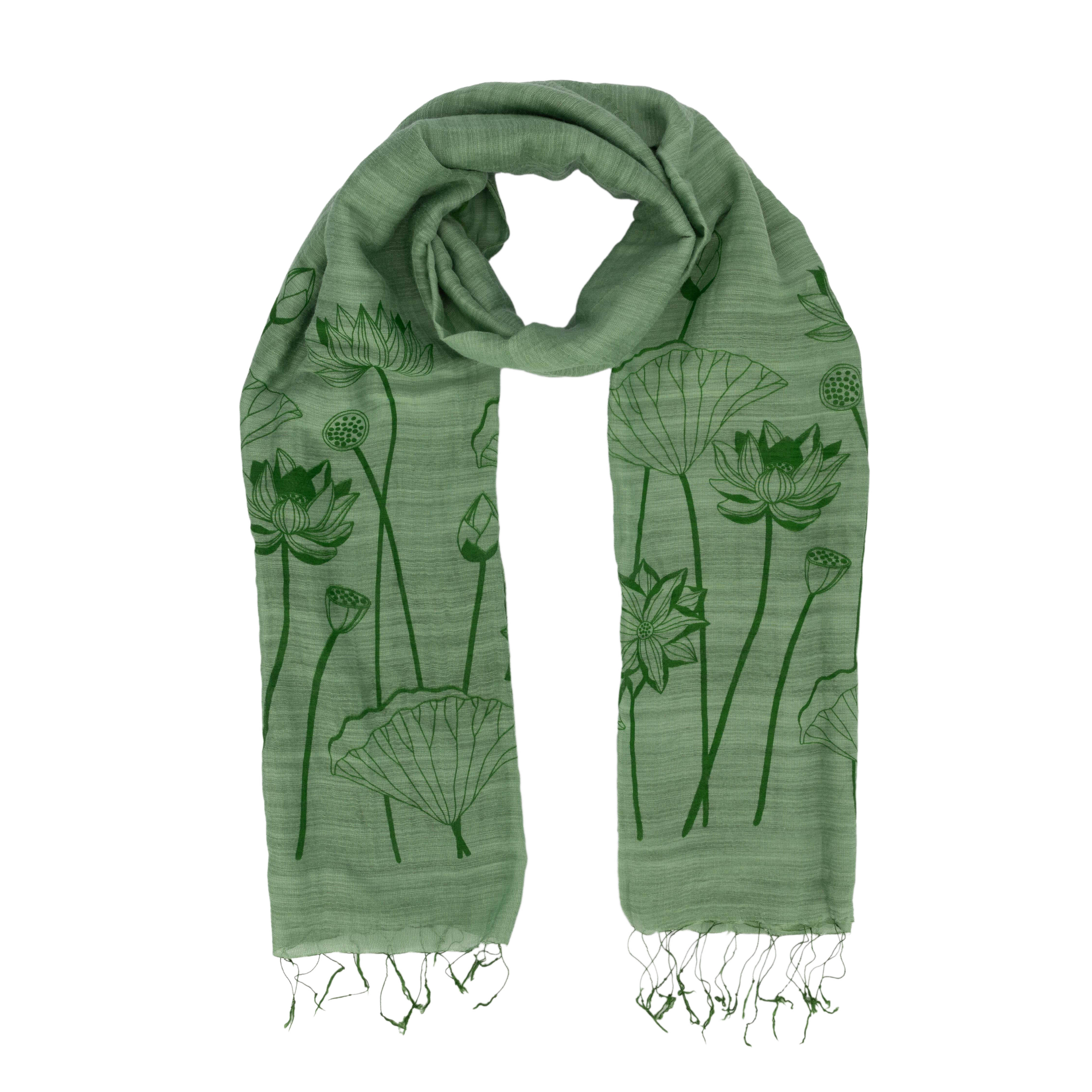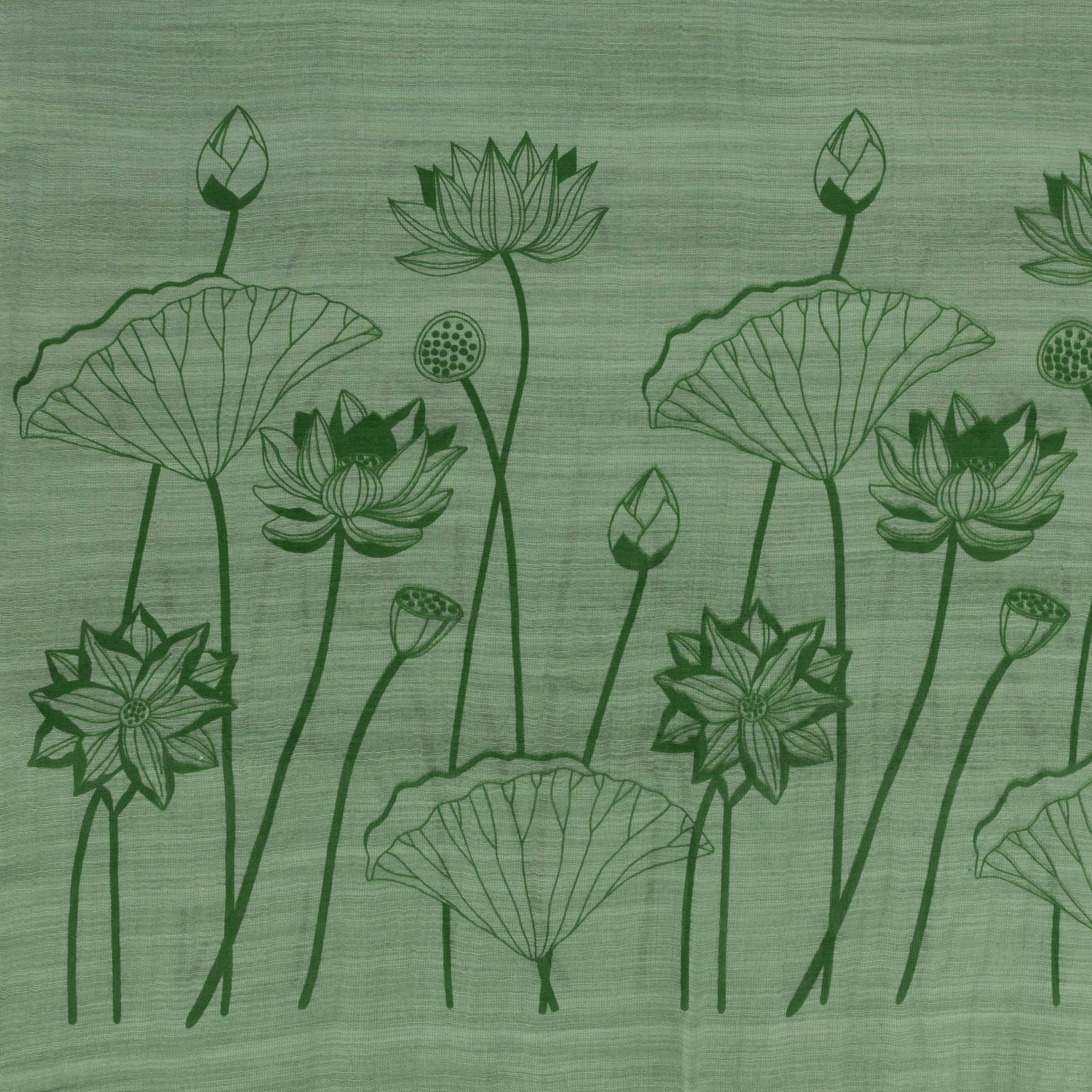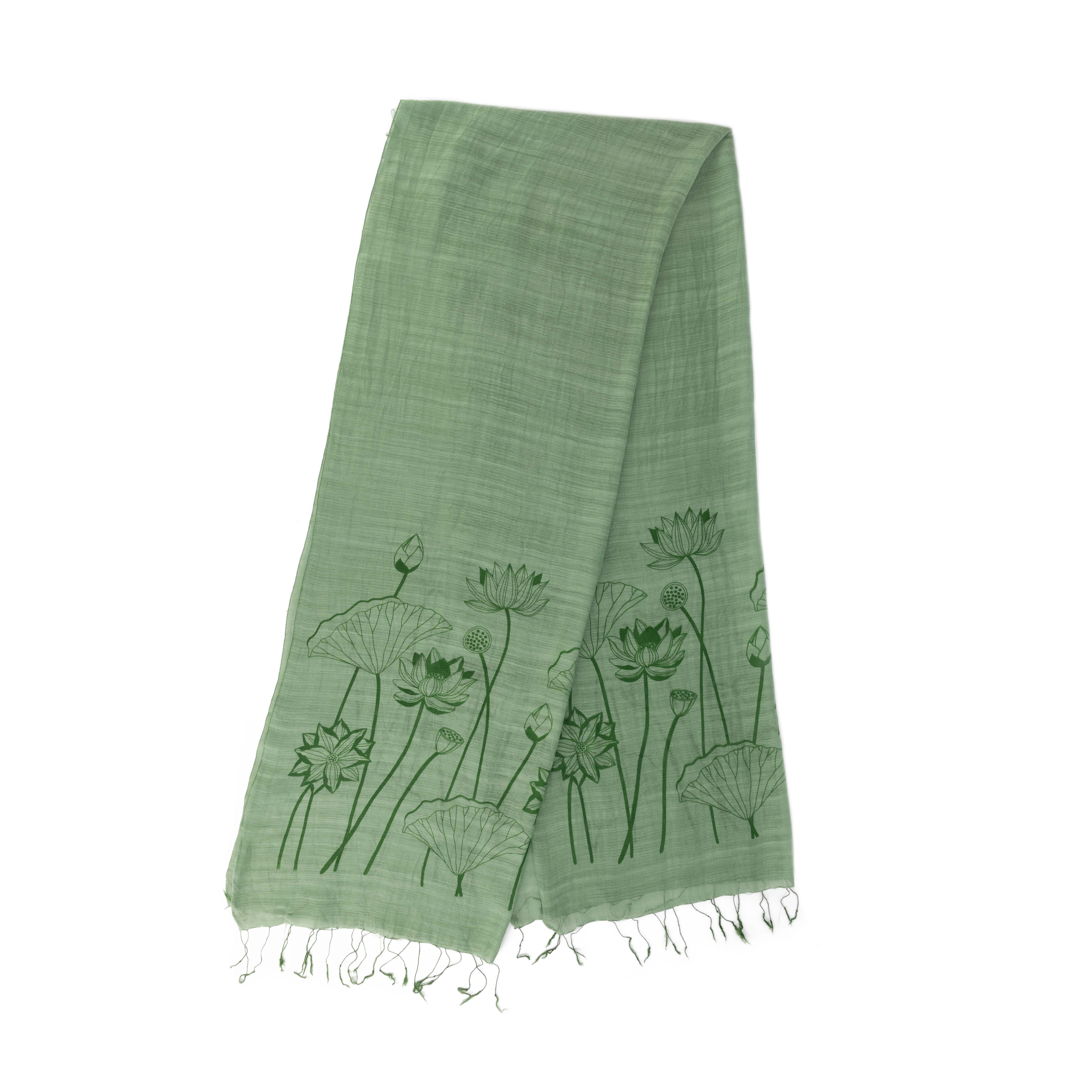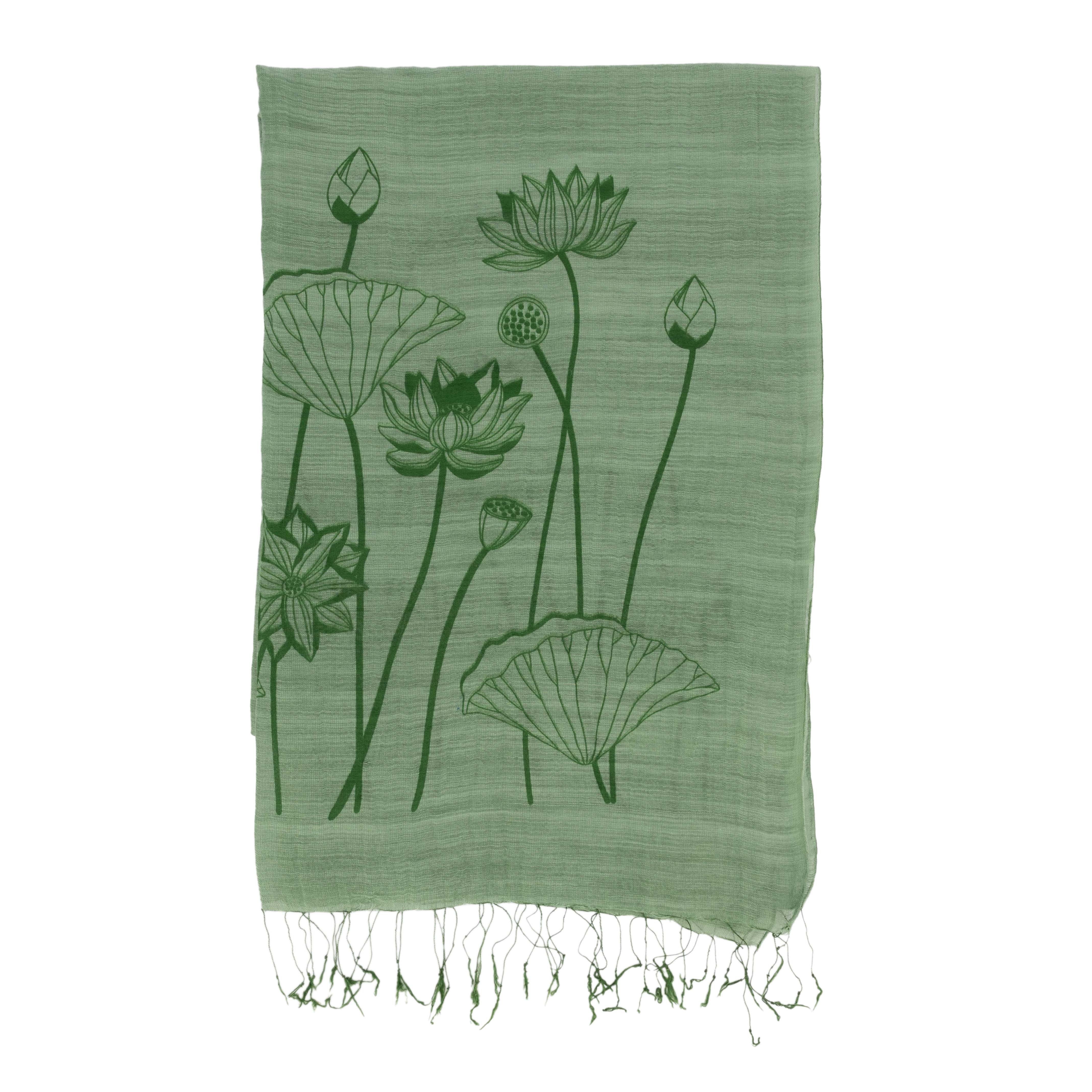 92% Baumwolle, 8% Seide, handgewebt und -bedruckt, grün, 60 x 180 cm