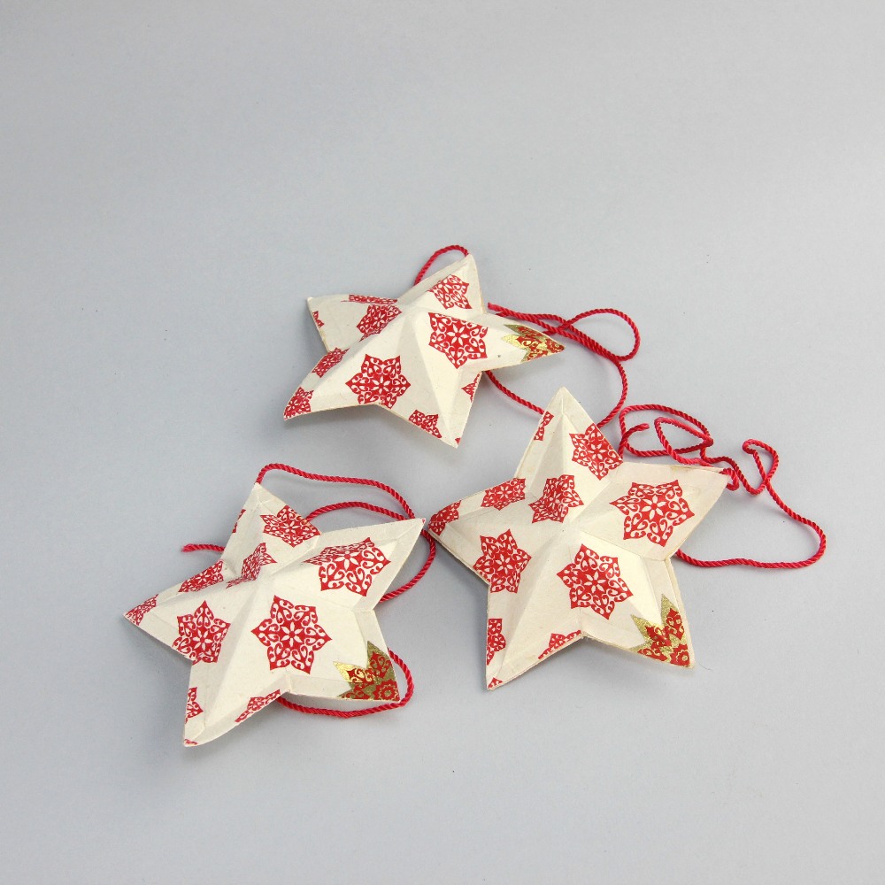 Dekohänger 3 Sterne 7 cm Weihnachten Oriental rot/gold Banana Paper