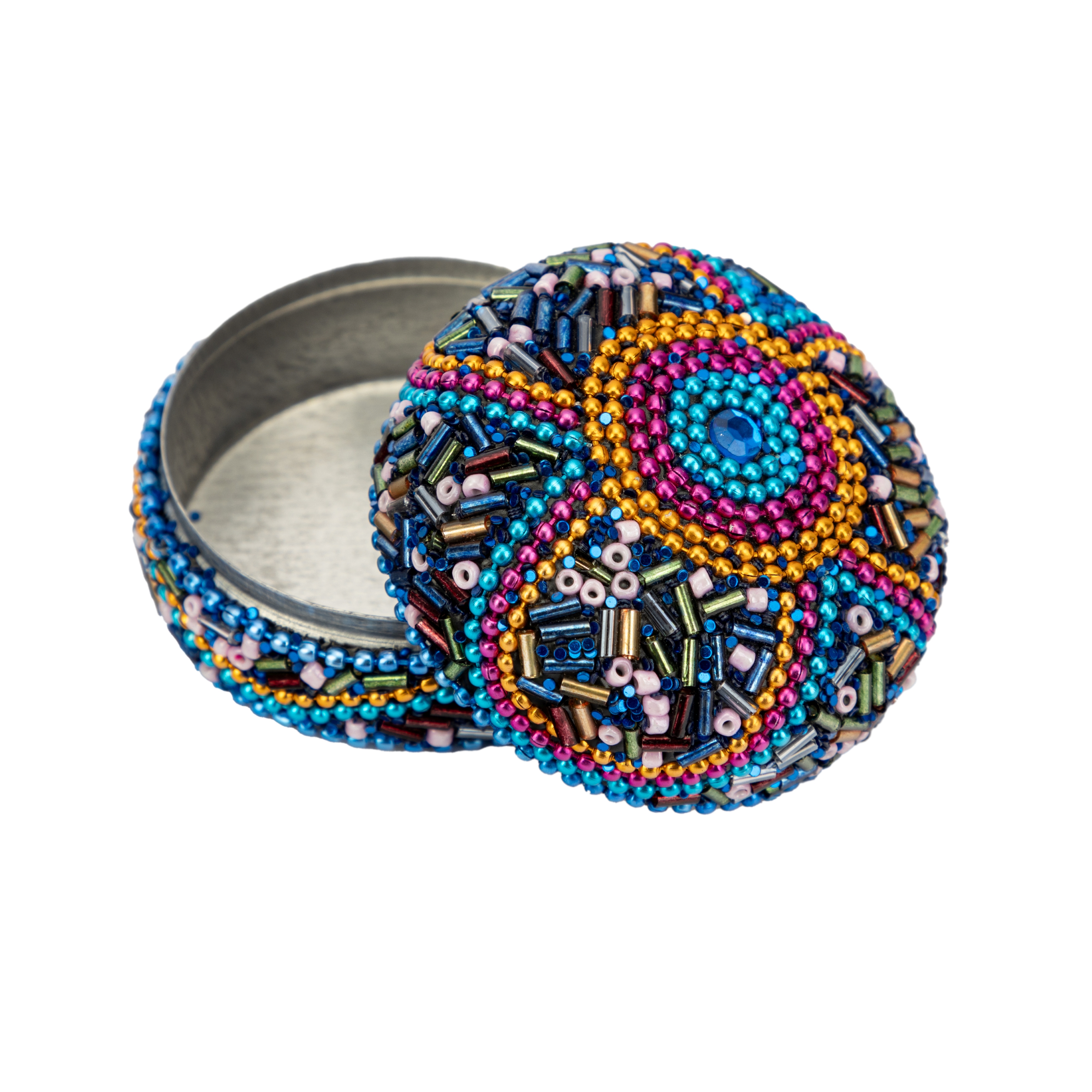Aluminium, Glasperlen, blau/bunt, Ø 5,5 cm