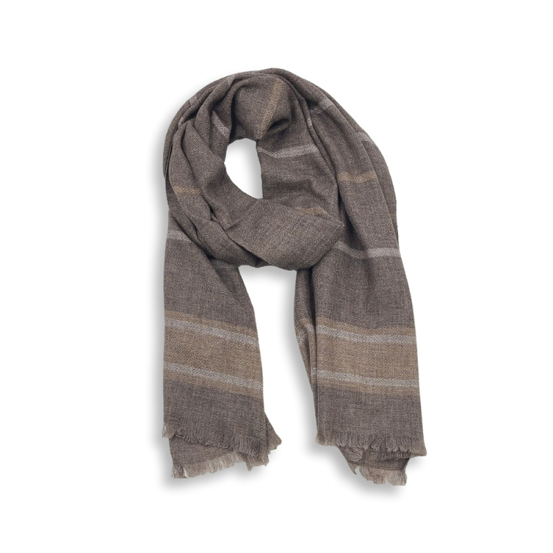 Gestreifter Wollschal: Braun mit Naturweiss & Beige
