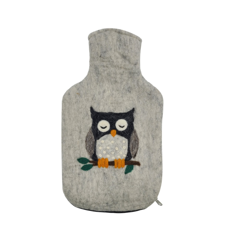 Waermflaschenueberzug Eule, hellgrau (2,0l)