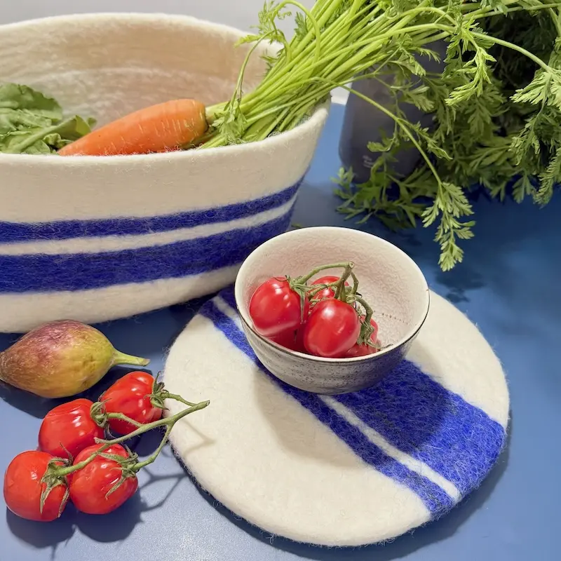 Filz-Topfuntersetzer blaue Streifen 20 cm