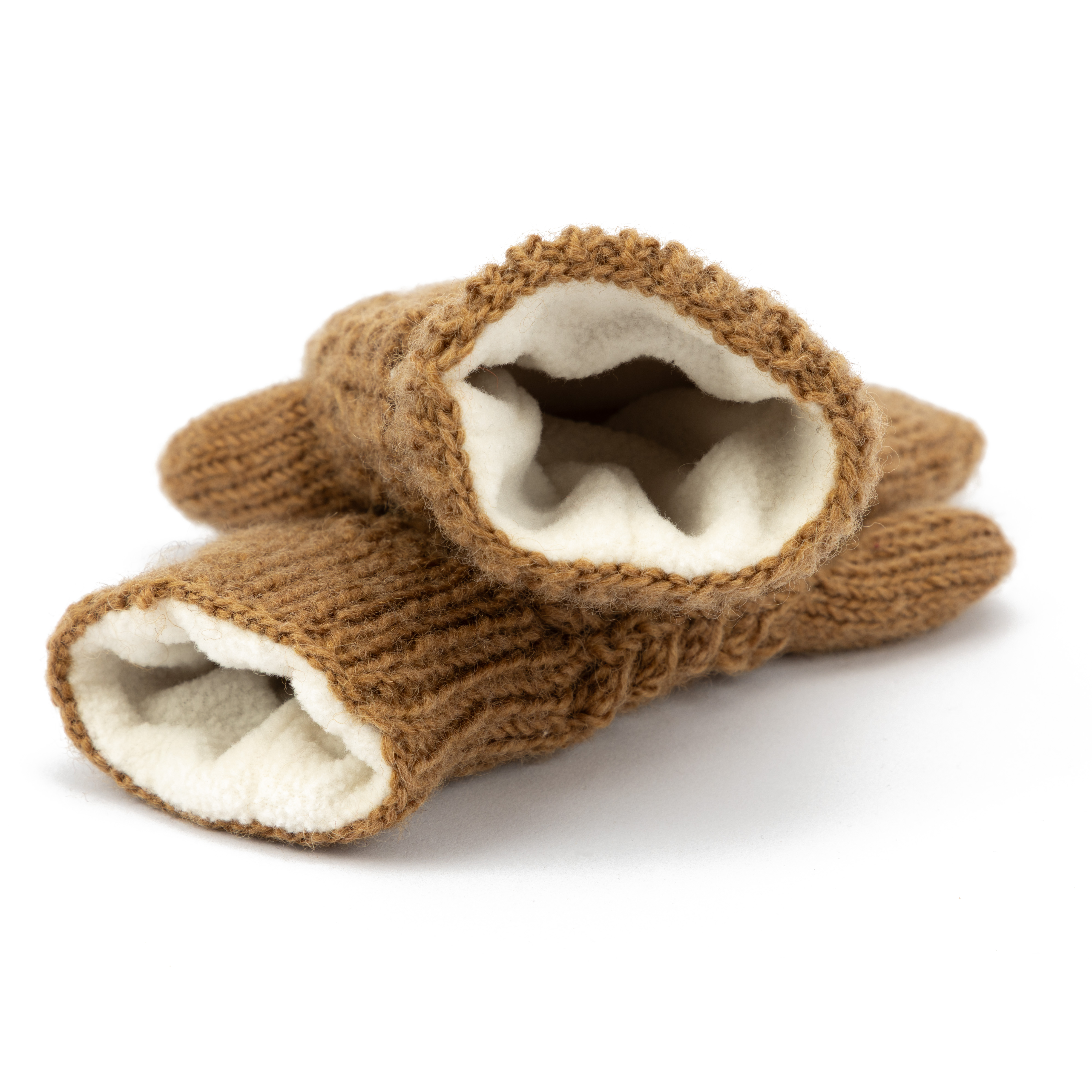 100% Schurwolle, Innenfutter: Fleece, hellbraun