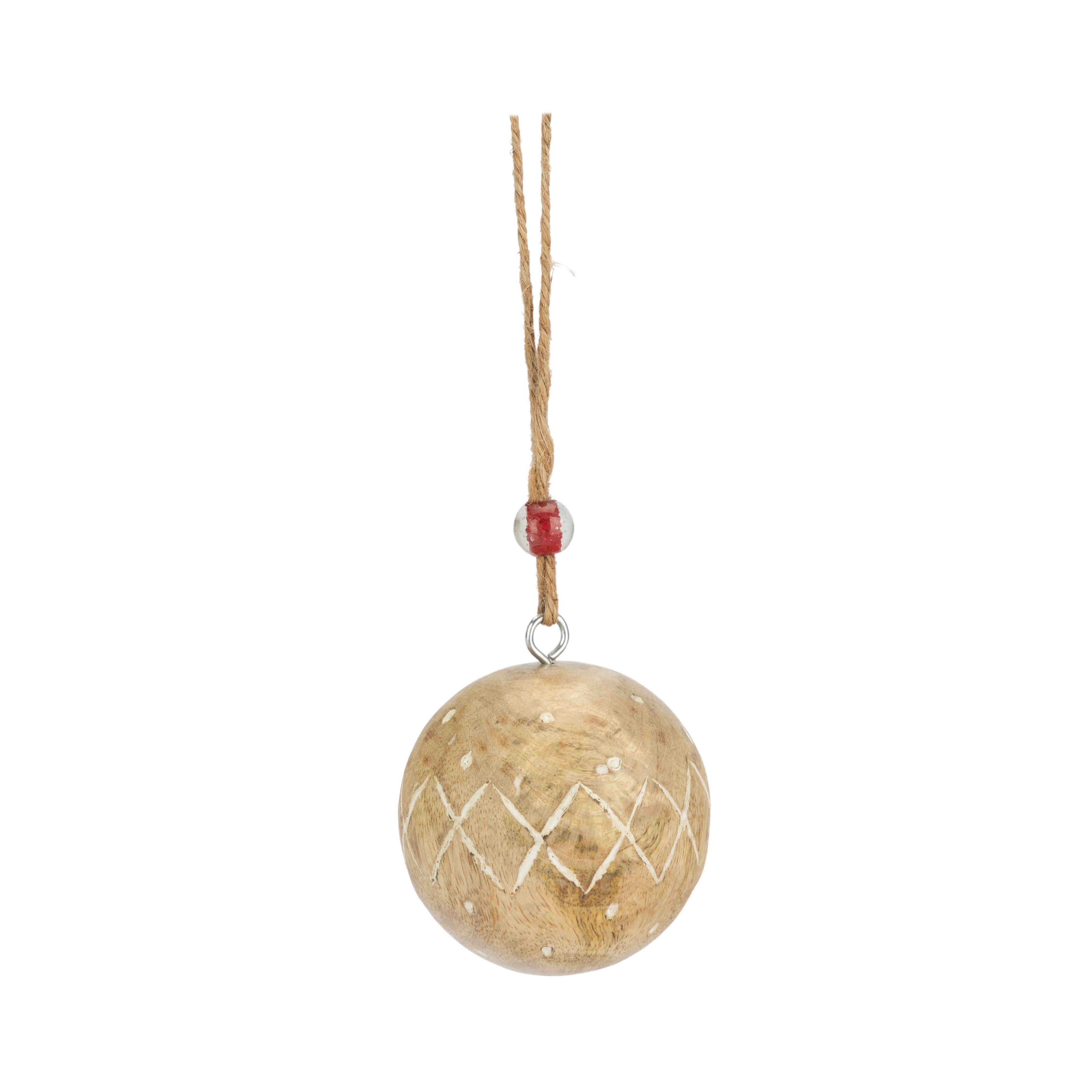 Mango-Holz, Glasperle, handgeschnitzt, braun/weiß, Ø 6,5 cm