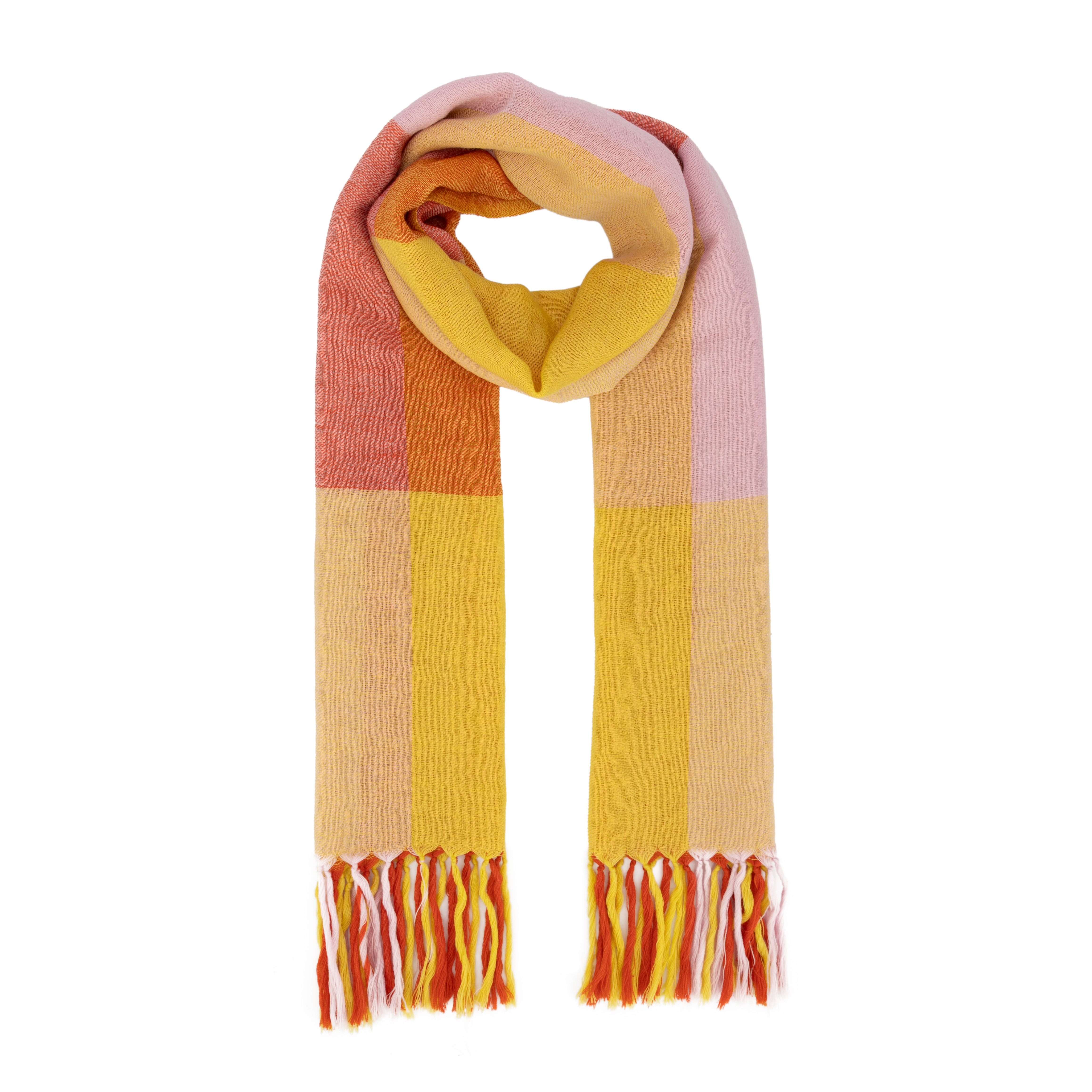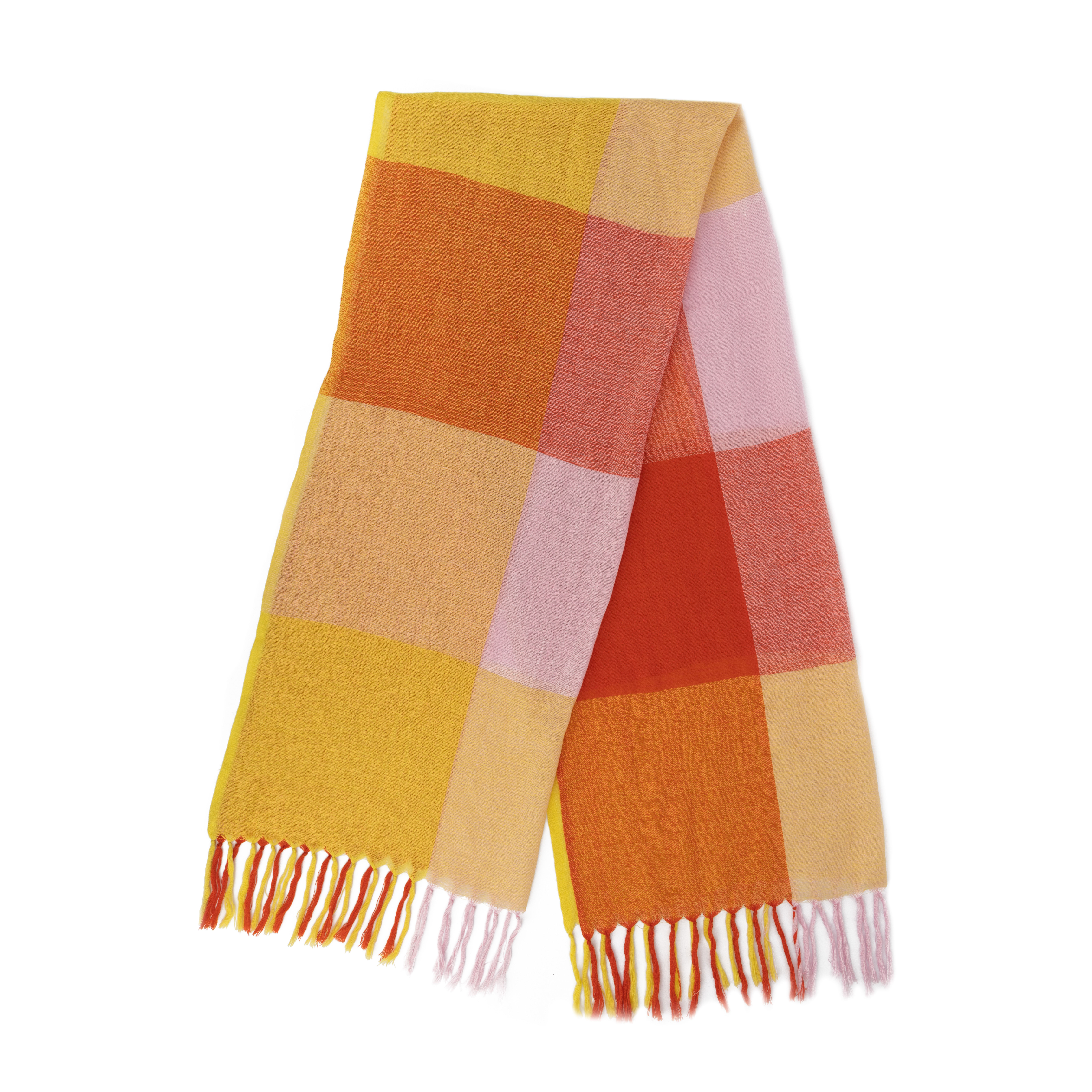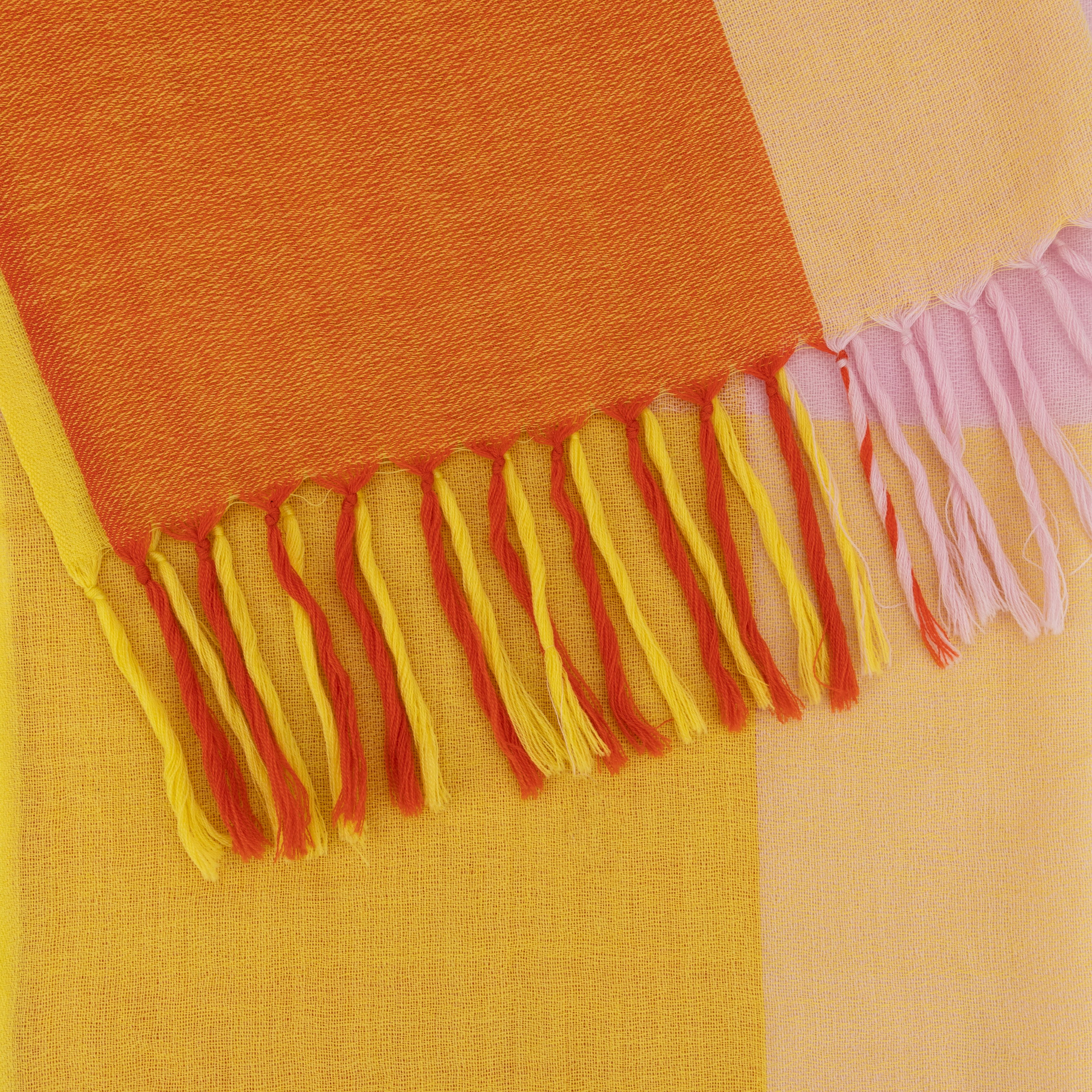 100% Merino-Wolle, handgewebt, orange/rot/gelb, 70 x 180 cm