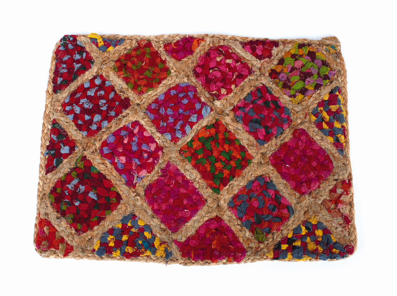 40% Jute, diverse recycelte Faserarten, Mindestgehalt Baumwolle 40%, natur/bunt, 50 x 40 cm