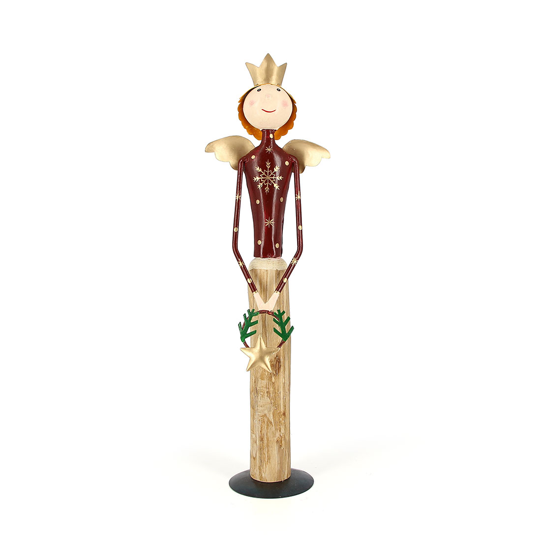 Figur ENGEL KRANZ GROSS, Metall, Eukalyptusholz