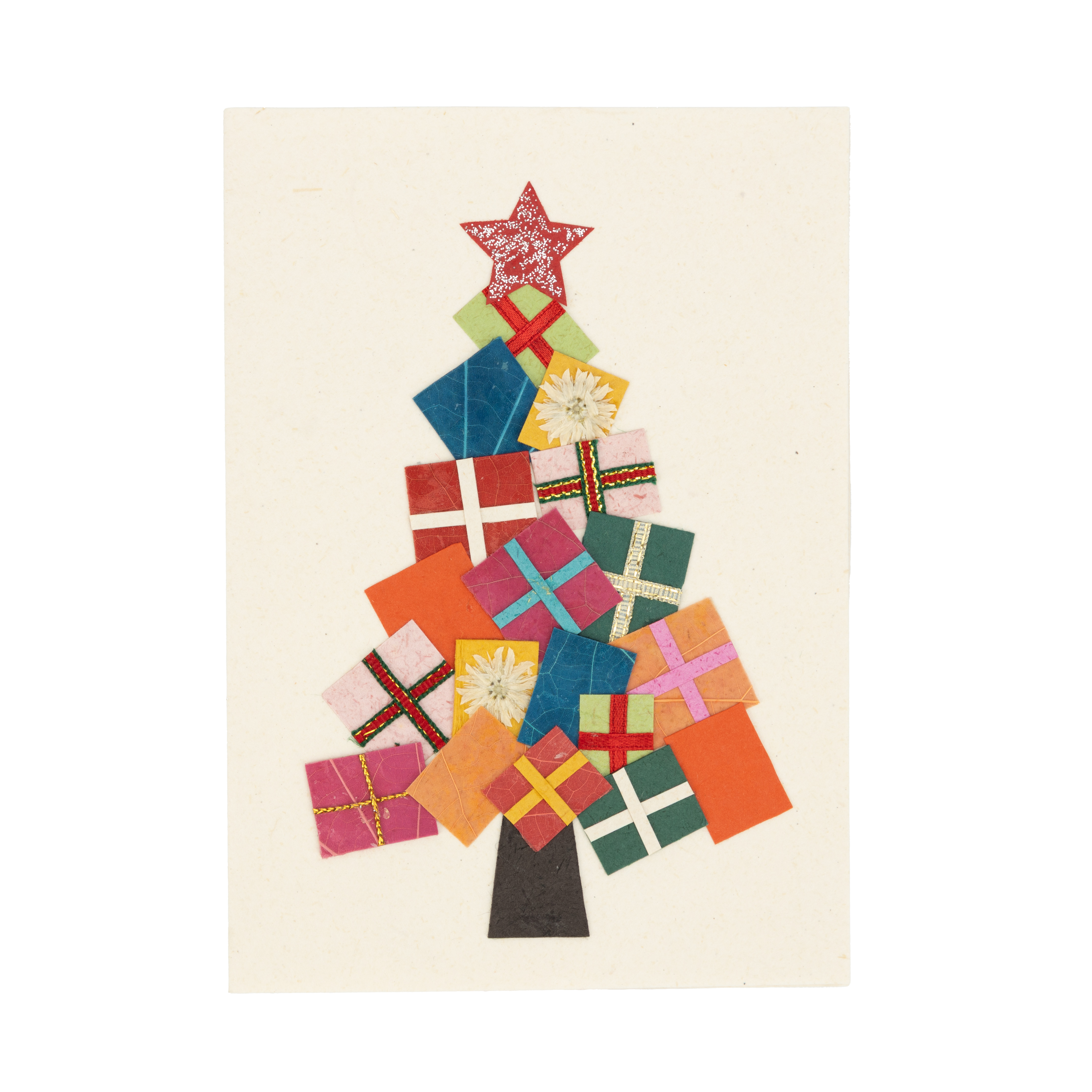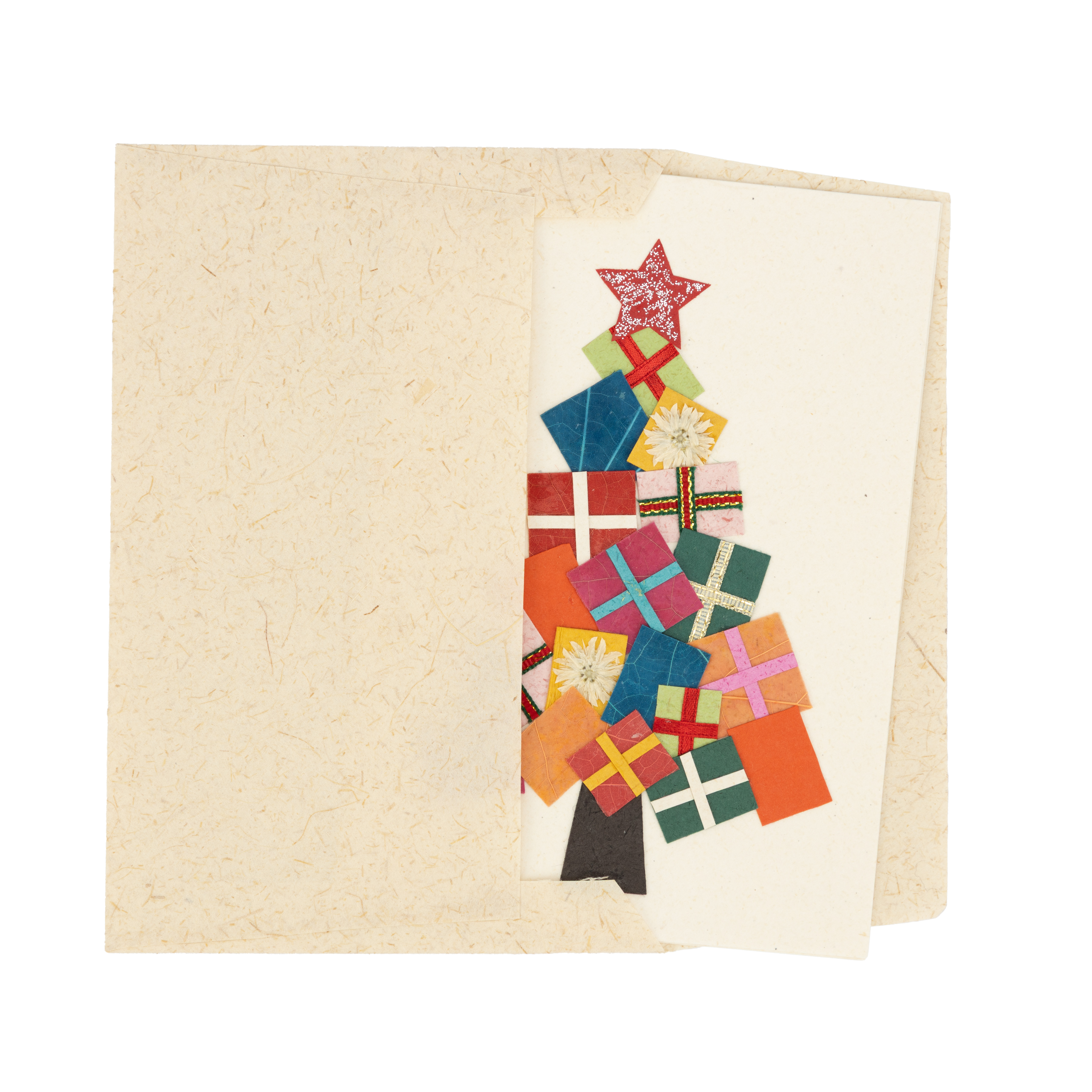 handgeschöpftes Papier, mit Blatt-Applikation, Doppelkarte mit Umschlag, natur/bunt, 12 x 17 cm