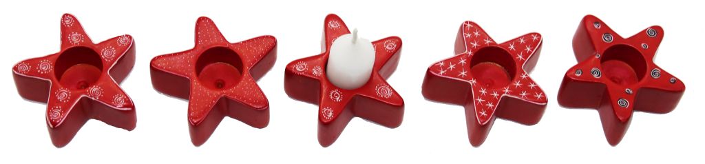 SP-Kerzenhalter Stern Grafik fuer Stabkerzen rot D 5,5 cm H 2,5 cm Kenia